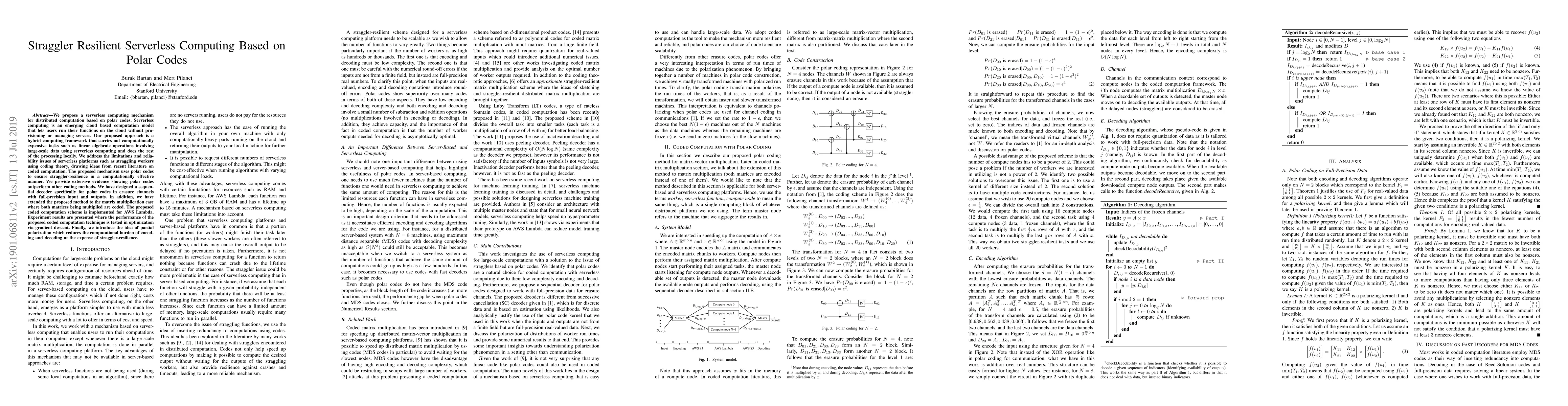 This paper proposes a serverless computing mechanism using polar codes to address straggler issues in distributed computation, ensuring resilience through coding theory. The method is implemented for AWS Lambda and demonstrates improved performance over other coding methods in gradient descent optimization.