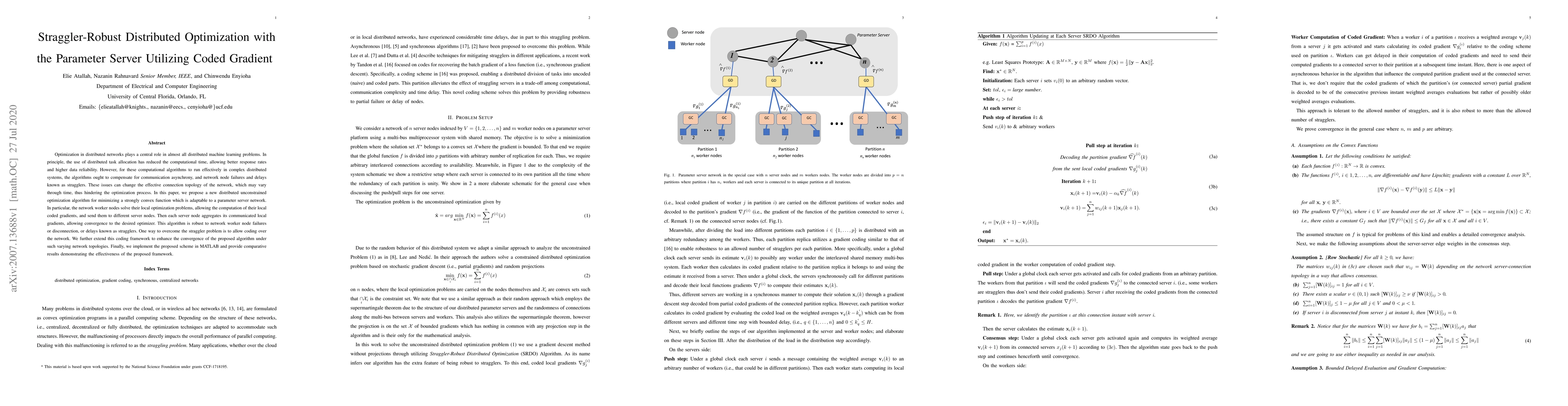 This paper proposes a new distributed optimization algorithm using coded gradients to tackle the straggler problem in parameter server networks, ensuring robustness against node failures and delays. The algorithm aggregates coded local gradients from worker nodes to converge to the optimal solution, demonstrated effectively through MATLAB implementation.
