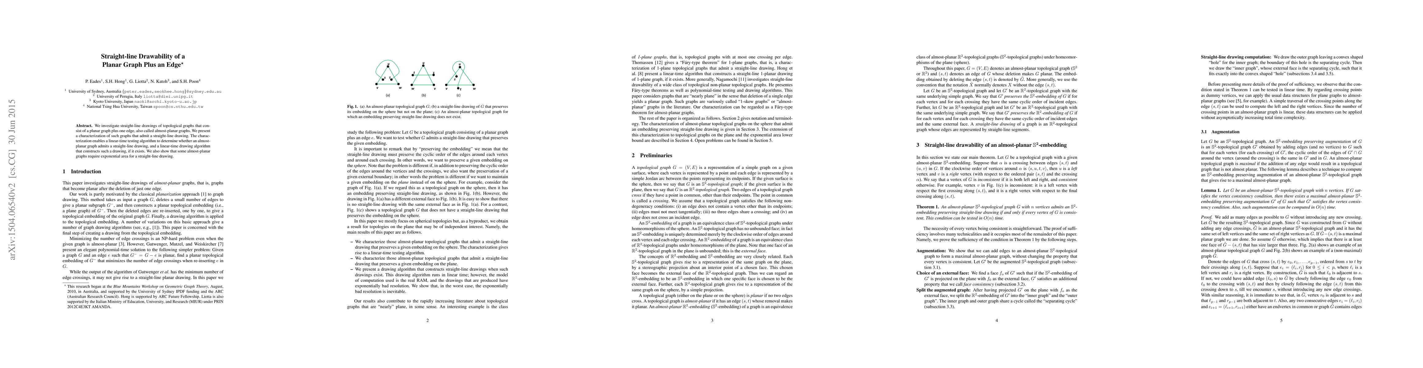 We investigate straight-line drawings of topological graphs that consist of a planar graph plus one edge, also called almost-planar graphs. We present a characterization of such graphs that admit a straight-line drawing. The characterization enables a linear-time testing algorithm to determine whether an almost-planar graph admits a straight-line drawing, and a linear-time drawing algorithm that constructs such a drawing, if it exists. We also show that some almost-planar graphs require exponential area for a straight-line drawing.
