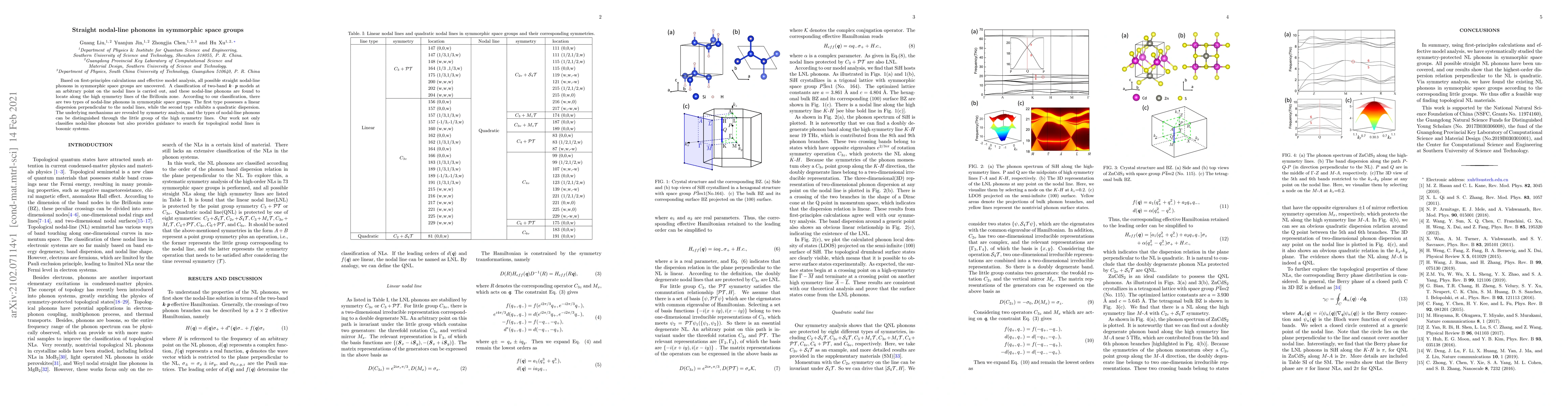 This paper uncovers and classifies straight nodal-line phonons in symmorphic space groups using first-principles calculations and effective model analysis. It identifies two types: one with linear dispersion and another with quadratic dispersion, providing a method to distinguish them via symmetry analysis and the little group.