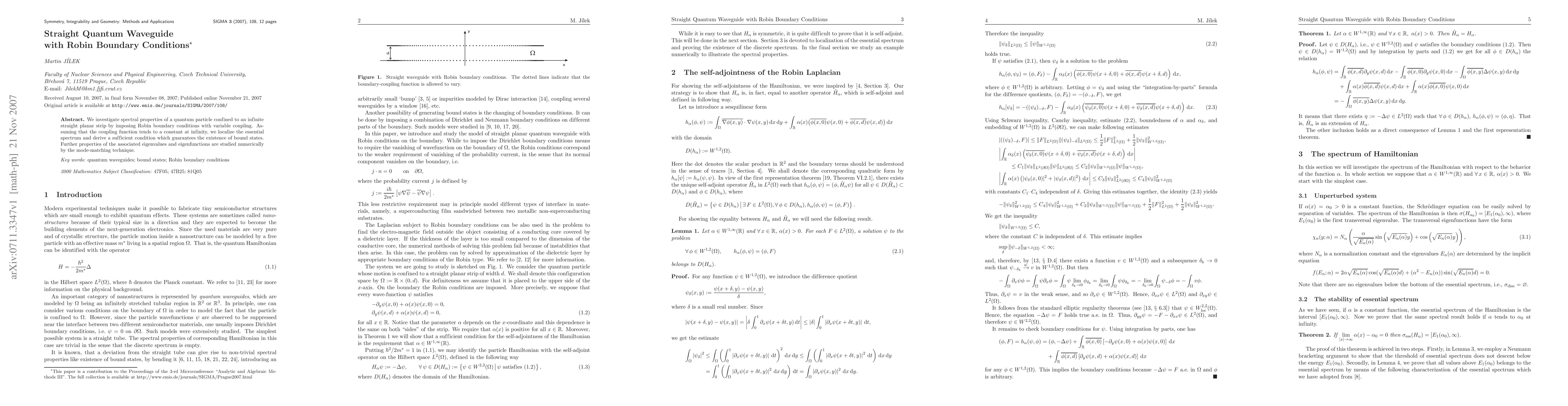 This paper explores the spectral properties of a quantum particle in a straight planar strip under Robin boundary conditions with variable coupling, localizing the essential spectrum and deriving conditions for bound states existence, with numerical analysis using the mode-matching technique.