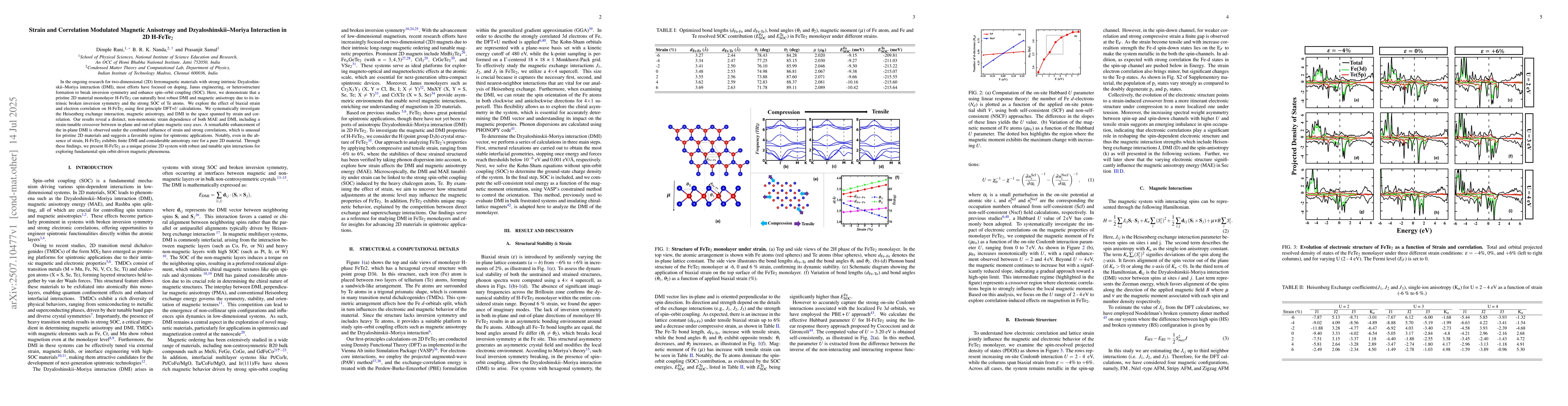 In the ongoing research on two-dimensional (2D) ferromagnetic materials with strong intrinsic Dzyaloshinskii--Moriya interaction (DMI), most efforts have focused on doping, Janus engineering, or heterostructure formation to break inversion symmetry and enhance spin--orbit coupling (SOC). Here, we demonstrate that a pristine 2D material, monolayer H-FeTe$_2$, can naturally host robust DMI and magnetic anisotropy due to its intrinsic broken inversion symmetry and the strong SOC of Te atoms. We explore the effect of biaxial strain and electron correlation on H-FeTe$_2$ using first-principles DFT+$U$ calculations. We systematically investigate the Heisenberg exchange interaction, magnetic anisotropy, and DMI in the space spanned by strain and correlation. Our results reveal a distinct, non-monotonic strain dependence of both magnetic anisotropy energy (MAE) and DMI, including a strain-tunable crossover between in-plane and out-of-plane magnetic easy axes. A remarkable enhancement of the in-plane DMI is observed under the combined influence of strain and strong correlations, which is unusual for pristine 2D materials and suggests a favorable regime for spintronic applications.Notably, even in the absence of strain, H-FeTe$_2$ exhibits finite DMI and considerable anisotropy, which is rare for a pure 2D material. Through these findings, we present H-FeTe$_2$ as a unique pristine 2D system with robust and tunable spin interactions for exploring fundamental spin--orbit-driven magnetic phenomena.
