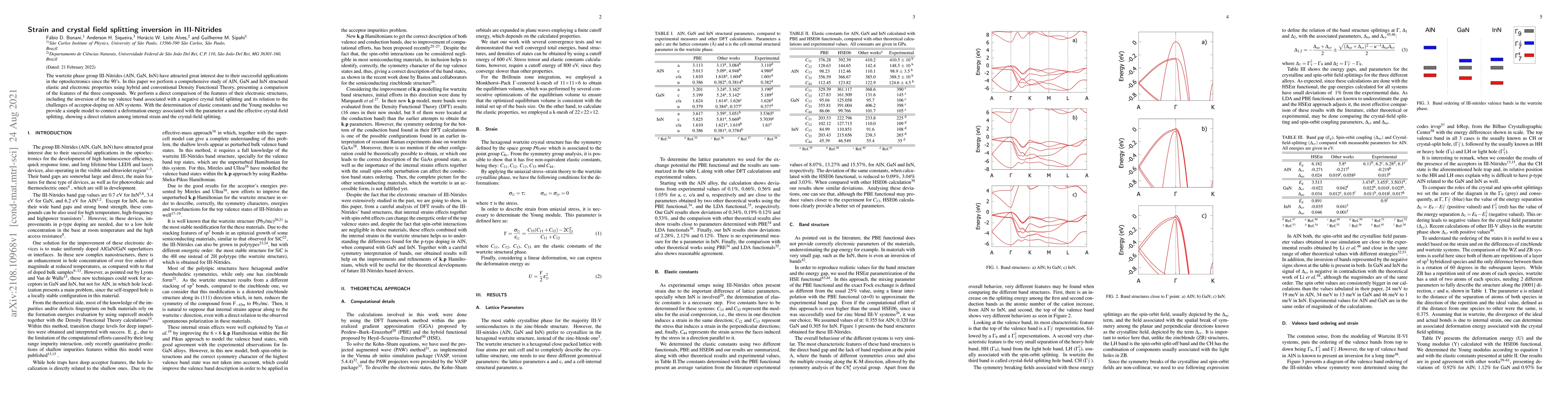 This paper investigates the structural, elastic, and electronic properties of AlN, GaN, and InN using Density Functional Theory, highlighting the inversion of the top valence band due to negative crystal field splitting. It establishes a direct relationship between internal strain and crystal-field splitting, offering insights into the challenges of acceptor-doping in AlN systems.
