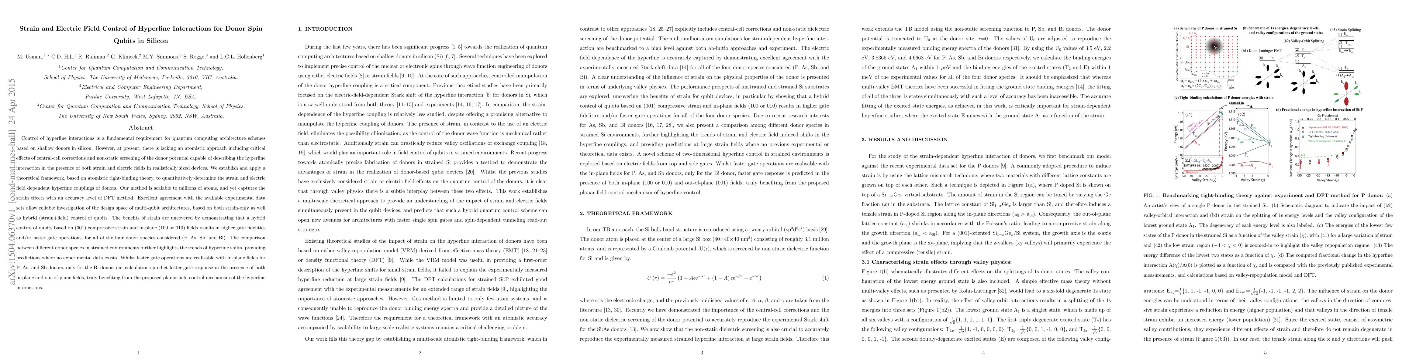 This paper develops a theoretical framework to control hyperfine interactions in silicon donor spin qubits using strain and electric fields, showing that hybrid control (strain + field) enhances qubit gate fidelities and speeds up operations. The study compares the effectiveness of different donor species under strain, predicting trends and gate responses where experimental data is lacking.