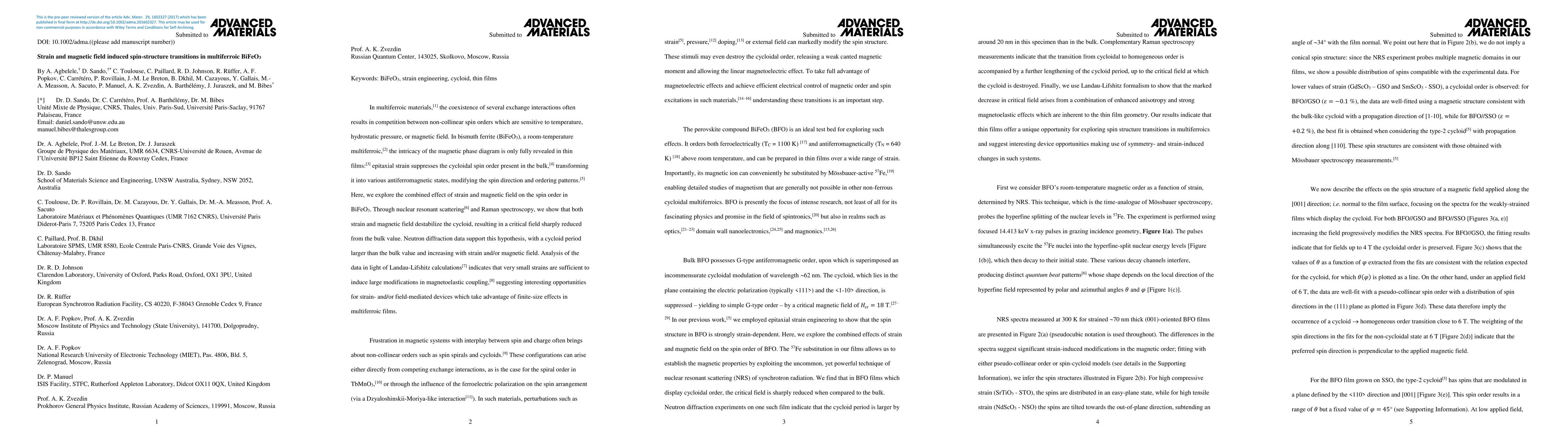 The magnetic-field-dependent spin ordering of strained BiFeO3 films is determined using nuclear resonant scattering and Raman spectroscopy. The critical field required to destroy the cycloidal modulation of the Fe spins is found to be significantly lower than in the bulk, with appealing implications for field-controlled spintronic and magnonic devices.