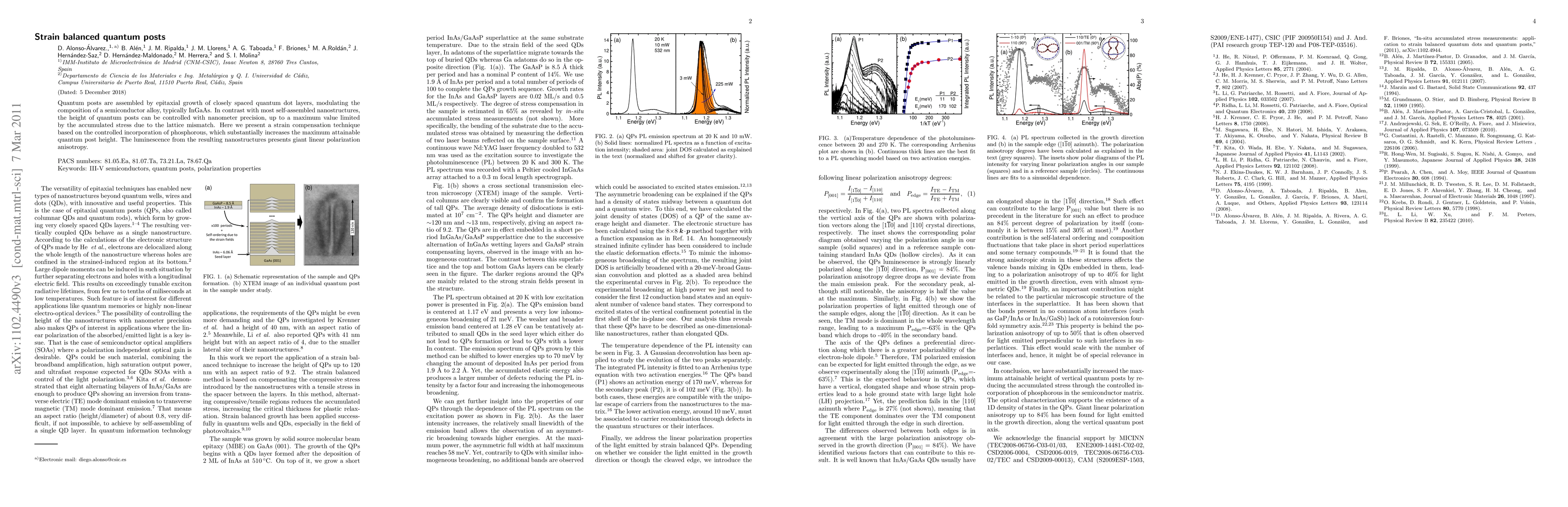 This paper introduces a strain compensation technique for quantum posts, achieved by incorporating phosphorous, which enhances the maximum height of quantum post structures. The method results in nanostructures with significant linear polarization anisotropy in their luminescence.