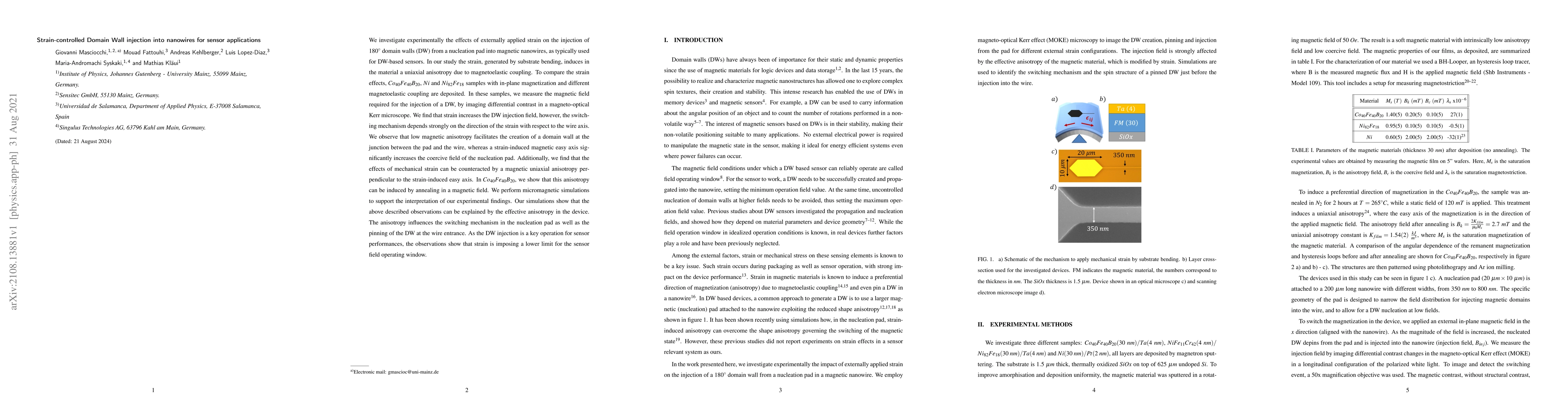Researchers investigate how applying strain to magnetic nanowires affects domain wall injection for sensor applications, finding that strain increases the required magnetic field but also alters switching mechanisms.