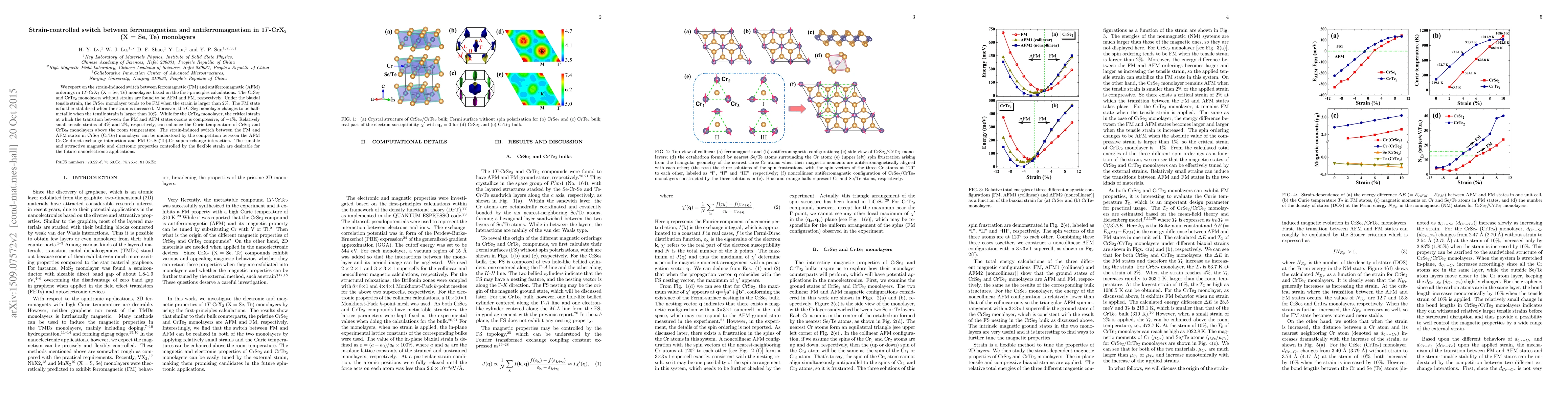 This paper reports on the strain-induced switch between ferromagnetism and antiferromagnetism in 1T-CrX2 (X = Se, Te) monolayers, demonstrating that tensile strain can transform CrSe2 from antiferromagnetic to ferromagnetic and enhance the Curie temperature above room temperature, while compressive strain affects CrTe2 similarly. The tunable magnetic properties suggest potential for nanoelectronic applications.