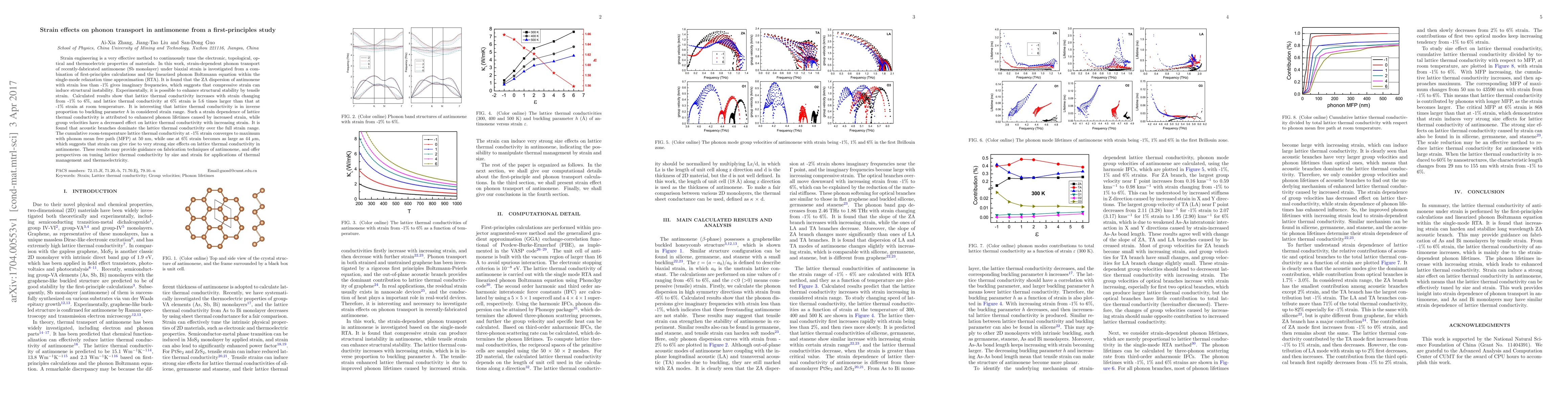 This study investigates how biaxial strain affects phonon transport in antimonene using first-principles calculations and the linearized phonon Boltzmann equation. Results show that lattice thermal conductivity increases with tensile strain, reaching 5.6 times higher at 6% strain compared to -1% strain at room temperature due to enhanced phonon lifetimes.