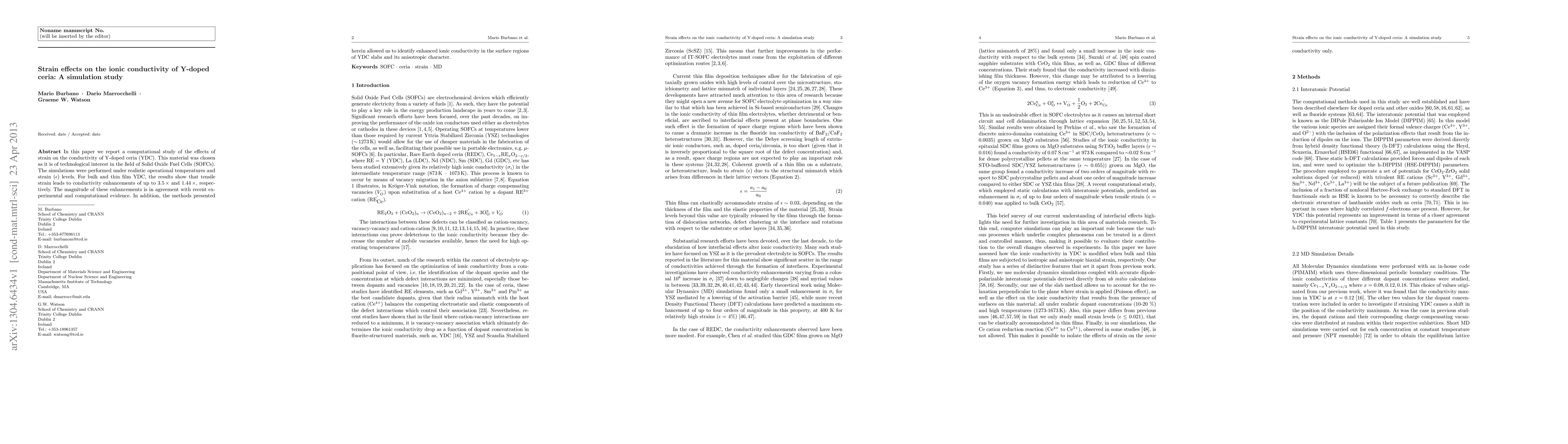 This study uses simulations to show that tensile strain can improve the ionic conductivity of Y-doped ceria up to 3.5x in bulk samples and 1.44x in thin films, enhancing its potential for use in Solid Oxide Fuel Cells.