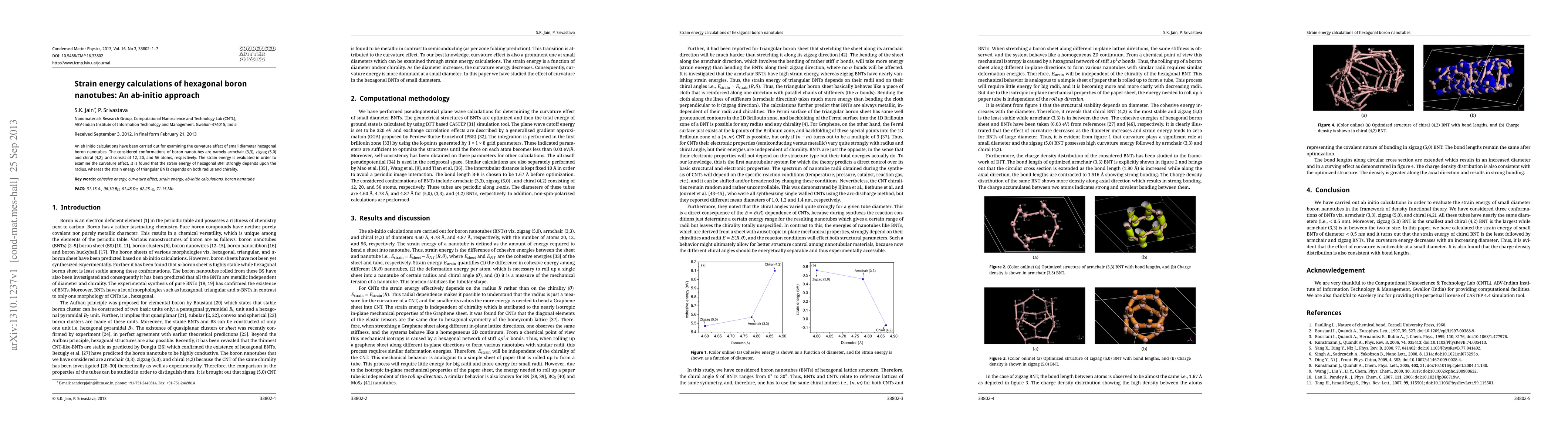 This study uses ab initio calculations to evaluate strain energy in small diameter hexagonal boron nanotubes, specifically armchair (3,3), zigzag (5,0), and chiral (4,2) conformations. The results indicate that strain energy in hexagonal boron nanotubes is radius-dependent, while triangular boron nanotubes' strain energy also varies with chirality.
