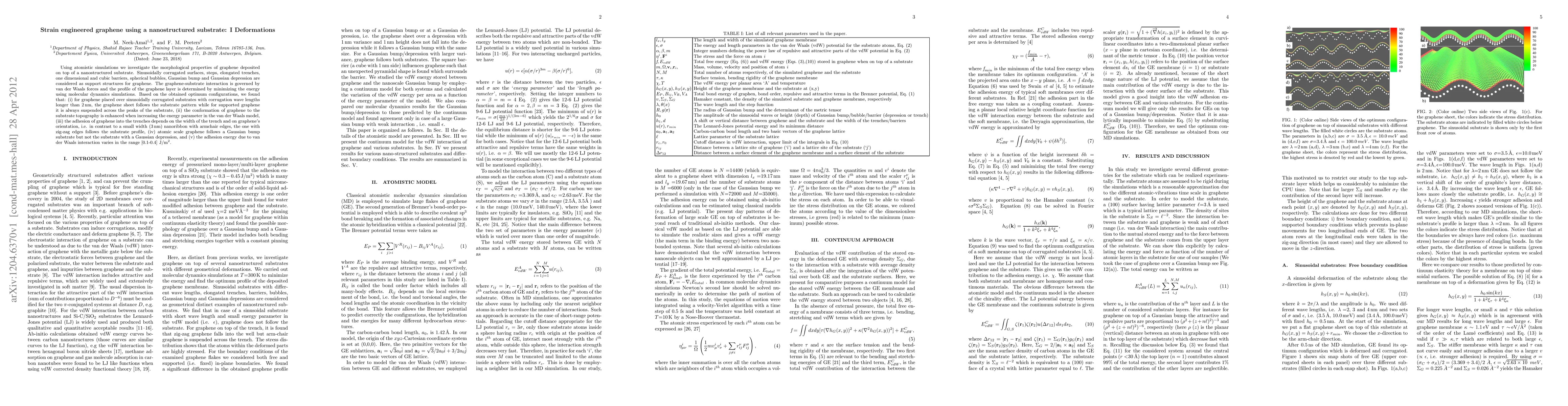 This paper uses atomistic simulations to study graphene's morphology on various nanostructured substrates, finding that graphene conforms to substrate topography based on corrugation wavelength and van der Waals interactions, and that adhesion and orientation significantly affect graphene's interaction with substrate features like trenches and bumps.