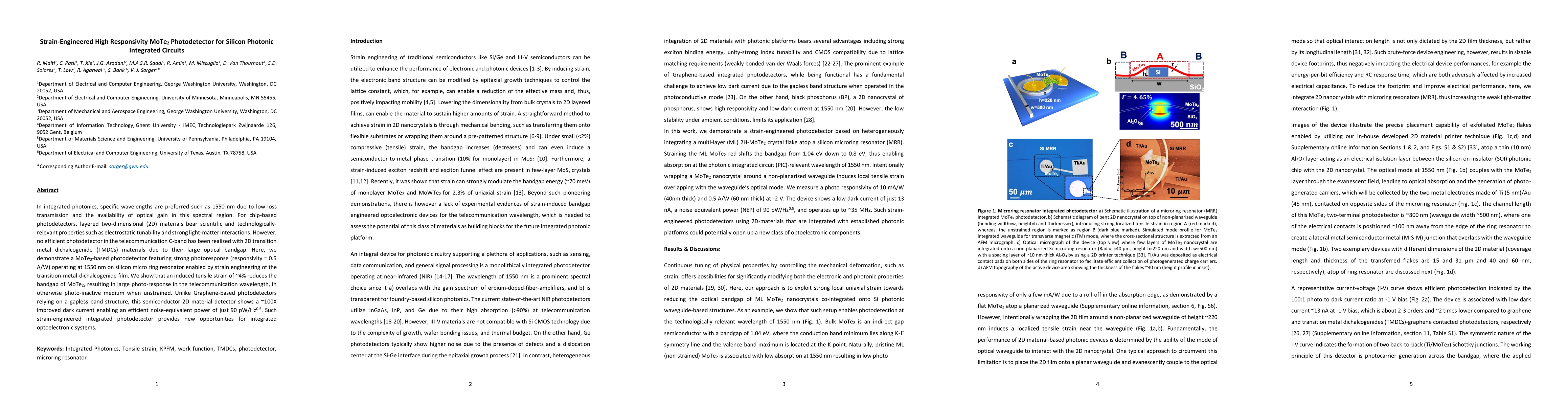 This paper demonstrates a high-responsivity MoTe2 photodetector engineered with 4% strain for 1550 nm operation, achieving a responsivity of 0.5 A/W and significantly improved dark current, enabling efficient noise-equivalent power of 90 pW/Hz^0.5, thus offering new prospects for integrated photonic systems.