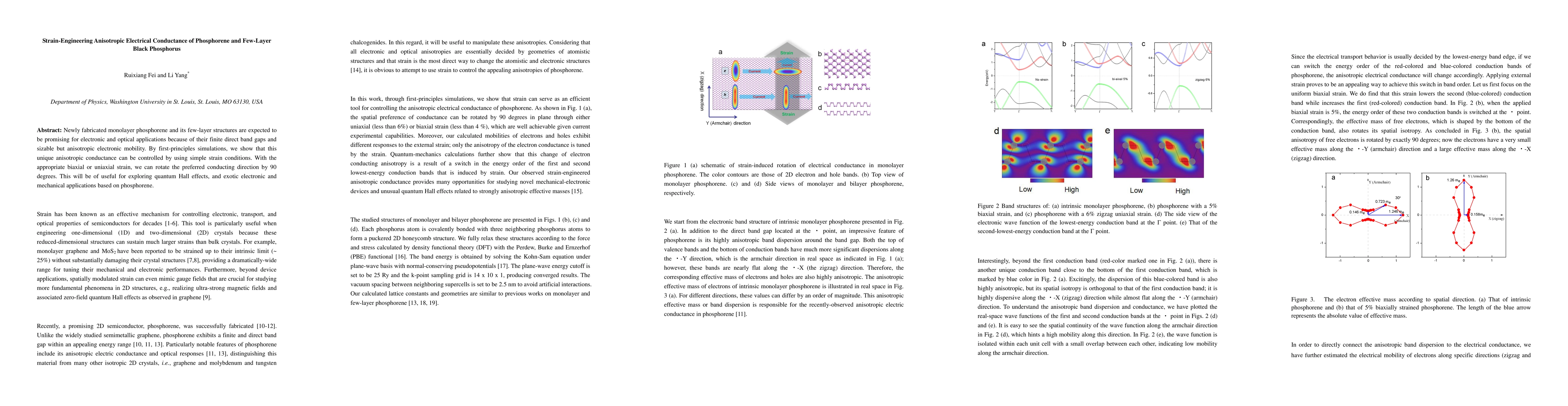This paper demonstrates that the anisotropic electrical conductance of monolayer phosphorene and few-layer black phosphorus can be engineered through strain. By applying biaxial or uniaxial strain, the preferred conducting direction can be rotated by 90 degrees, which has potential applications in quantum Hall effects and other exotic electronic and mechanical systems.