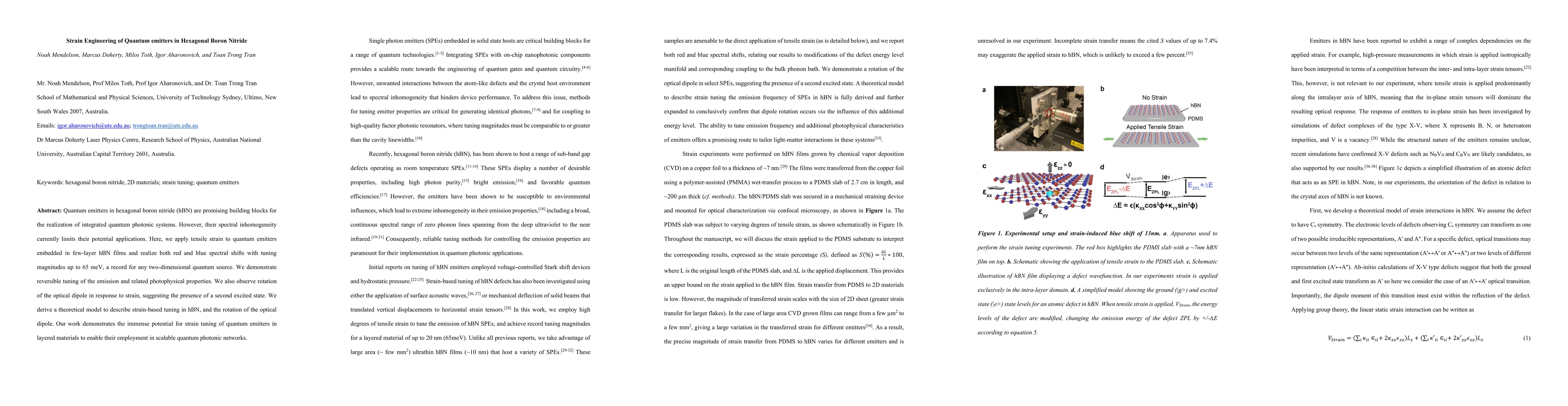 Theoretical modeling and experimental demonstration of strain-tunable quantum emitters in hexagonal boron nitride.