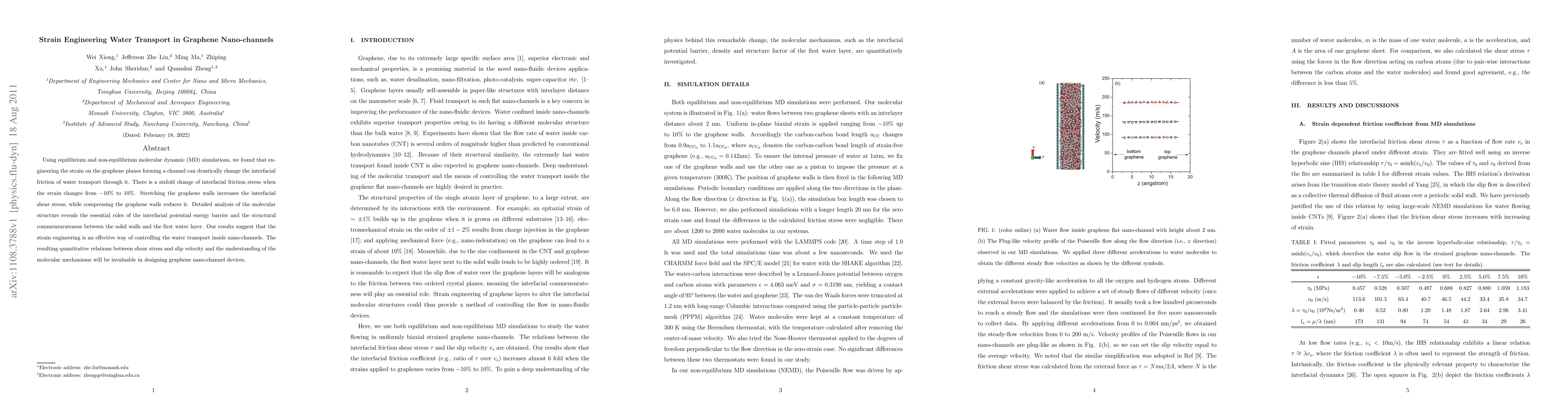 Strain engineering significantly alters water transport in graphene nano-channels by modifying interfacial friction, with a sixfold change in interfacial friction stress as strain varies from -10% to 10%. This manipulation is driven by the structural commensurateness and interfacial potential energy barrier, offering a powerful method for controlling water flow in nano-devices.