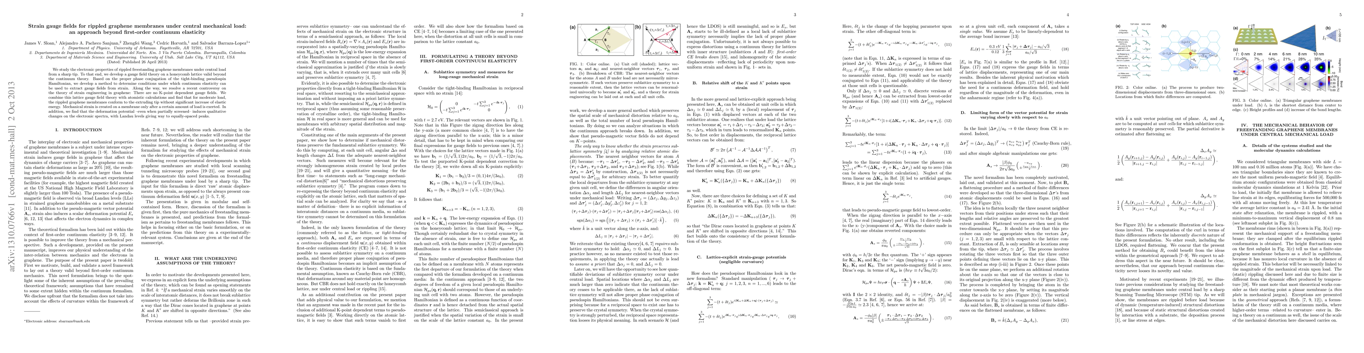 We study the electronic properties of rippled freestanding graphene membranes under central load from a sharp tip. To that end, we develop a gauge field theory on a honeycomb lattice valid beyond the continuum theory. Based on the proper phase conjugation of the tight-binding pseudospin Hamiltonian, we develop a method to determine conditions under which continuum elasticity can be used to extract gauge fields from strain. Along the way, we resolve a recent controversy on the theory of strain engineering in graphene: There are no K-point dependent gauge fields. We combine this lattice gauge field theory with atomistic calculations and find that for moderate load, the rippled graphene membranes conform to the extruding tip without significant increase of elastic energy. Mechanical strain is created on a membrane only after a certain amount of load is exerted. In addition, we find that the deformation potential --even when partially screened-- induces qualitative changes on the electronic spectra, with Landau levels giving way to equally-spaced peaks.
