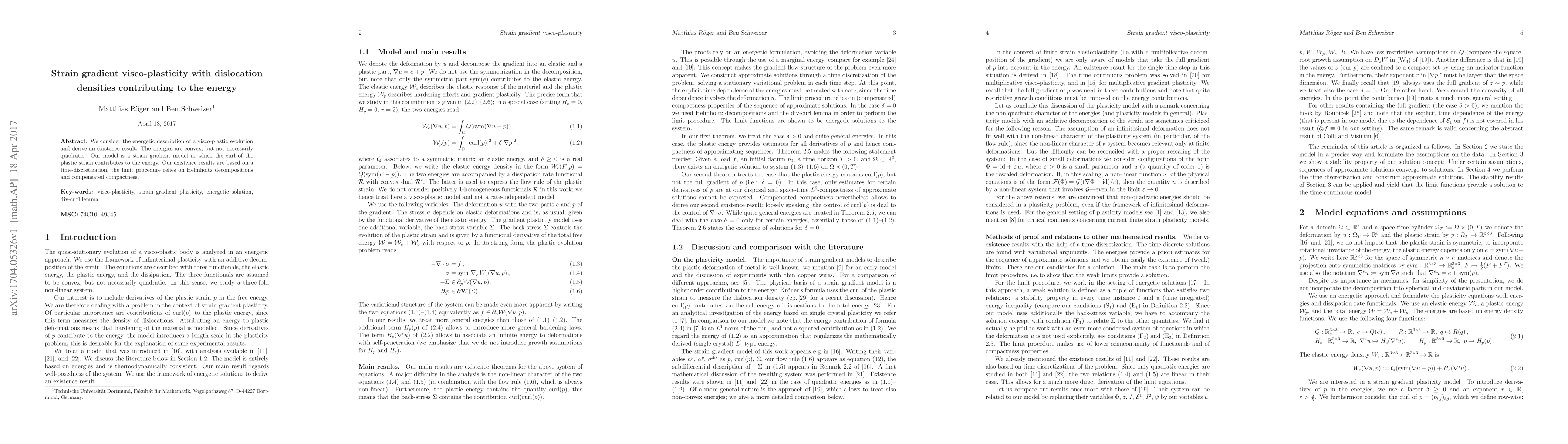 We consider the energetic description of a visco-plastic evolution and derive an existence result. The energies are convex, but not necessarily quadratic. Our model is a strain gradient model in which the curl of the plastic strain contributes to the energy. Our existence results are based on a time-discretization, the limit procedure relies on Helmholtz decompositions and compensated compactness.