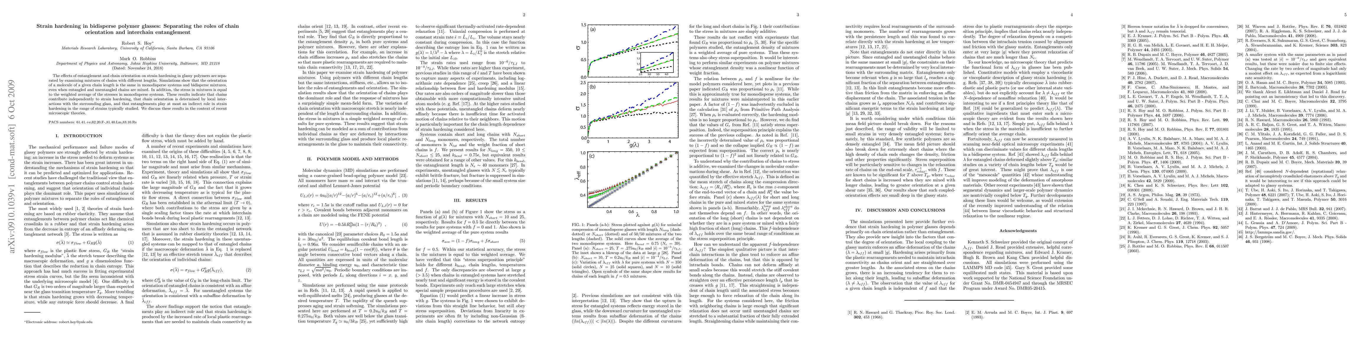 The effects of entanglement and chain orientation on strain hardening in glassy polymers are separated by examining mixtures of chains with different lengths. Simulations show that the orientation of a molecule of a given chain length is the same in monodisperse systems and bidisperse mixtures, even when entangled and unentangled chains are mixed. In addition, the stress in mixtures is equal to the weighted average of the stresses in monodisperse systems. These results indicate that chains contribute independently to strain hardening, that chain orientation is determined by local interactions with the surrounding glass, and that entanglements play at most an indirect role in strain hardening in the range of strains typically studied. We discuss these results in the context of recent microscopic theories.