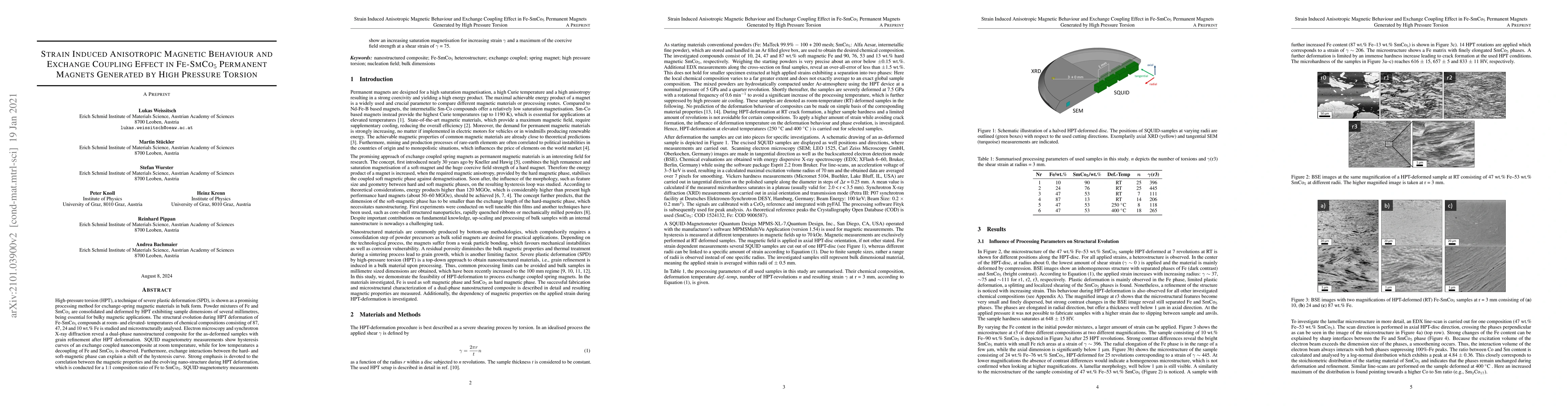 This study investigates the anisotropic magnetic behavior and exchange coupling in Fe-SmCo$_{5}$ permanent magnets processed via high-pressure torsion (HPT). The HPT technique induces a dual-phase nanostructured composite with grain refinement, leading to enhanced magnetic properties, including an increasing saturation magnetisation and a peak in coercive field strength at a shear strain of 75.