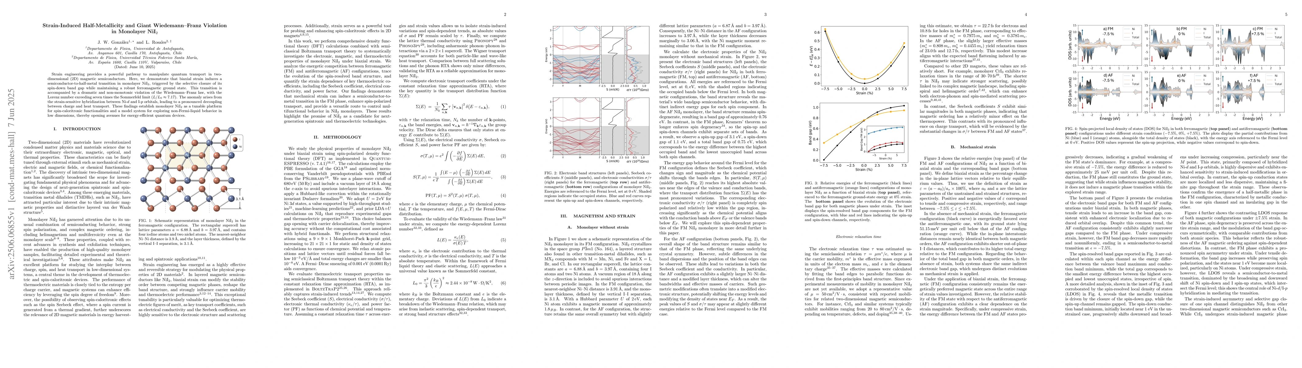 Monolayer NiI$_2$ exhibits a semiconductor-to-half-metal transition under biaxial strain, leading to a giant Wiedemann-Franz violation and potential for spin-caloritronic functionalities.