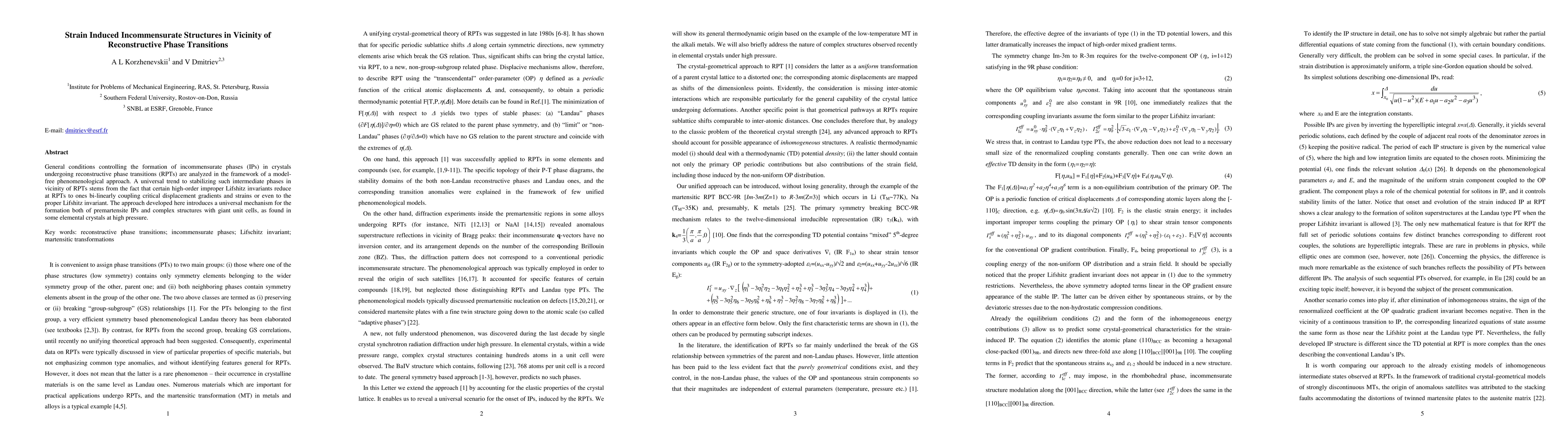 This paper explores the conditions for forming incommensurate phases near reconstructive phase transitions using a model-free approach. It identifies a universal trend where high-order improper Lifshitz invariants stabilize these intermediate phases, explaining the formation of premartensite and complex structures under high pressure.