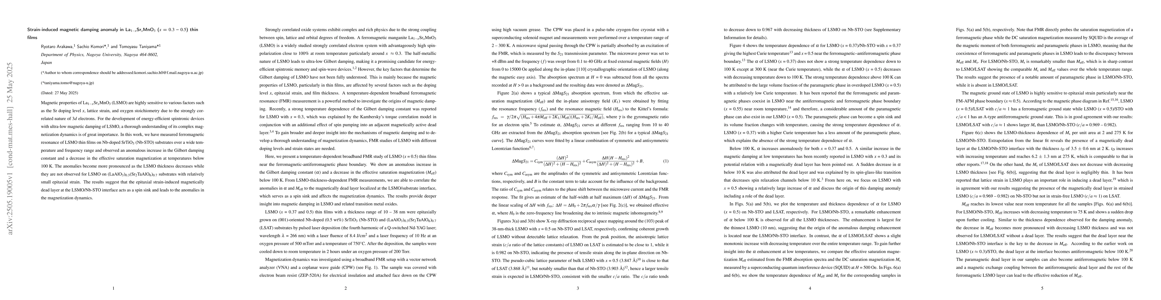 First to report strain-induced magnetic damping anomaly in LSMO thin films, highlighting the role of interface spin sinks in magnetization dynamics.