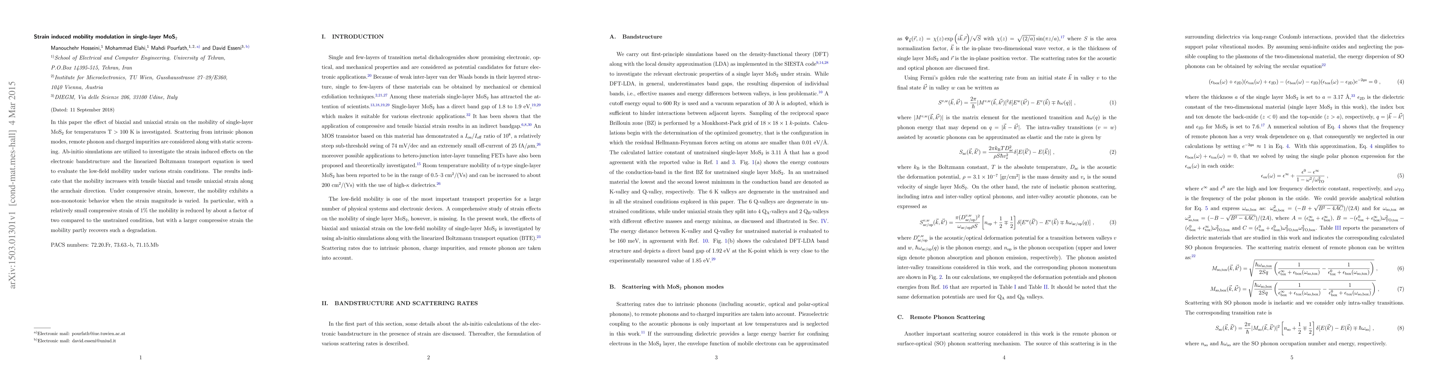This paper investigates the impact of biaxial and uniaxial strain on the mobility of single-layer MoS$_2$ at temperatures above 100 K, finding that tensile strains enhance mobility while compressive strains initially reduce it but partially recover with larger strains. Ab-initio simulations and the Boltzmann transport equation are used to analyze the strain-induced changes in electronic bandstructure and mobility.