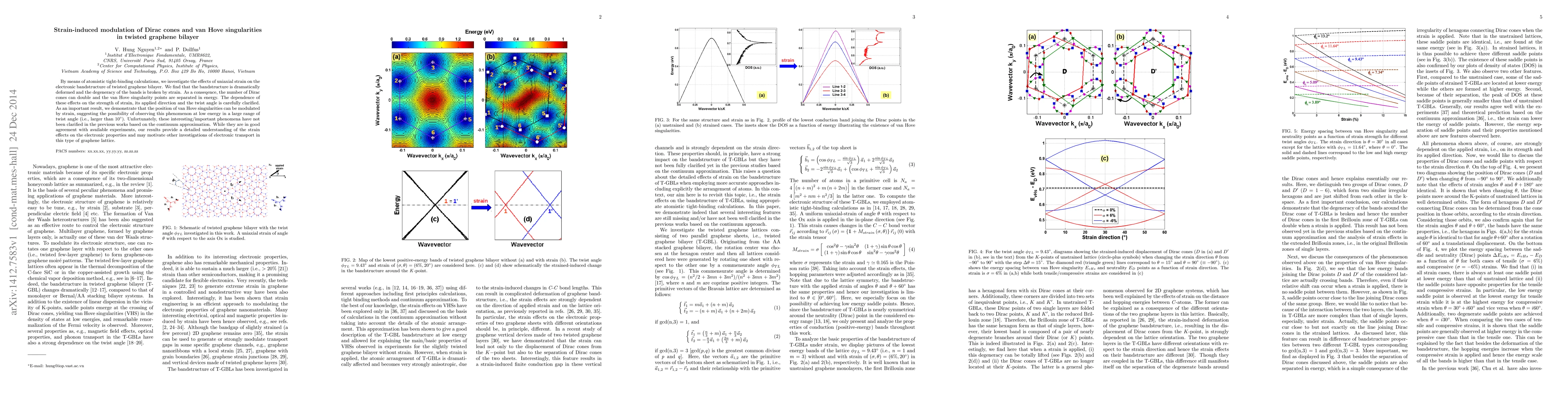 This paper investigates the impact of uniaxial strain on the electronic band structure of twisted graphene bilayers using atomistic tight-binding calculations, revealing that strain can double Dirac cones and separate van Hove singularities, with effects dependent on strain strength, direction, and twist angle. These findings, not previously observed in continuum models, suggest potential for low-energy observation and motivate further studies on electronic transport.