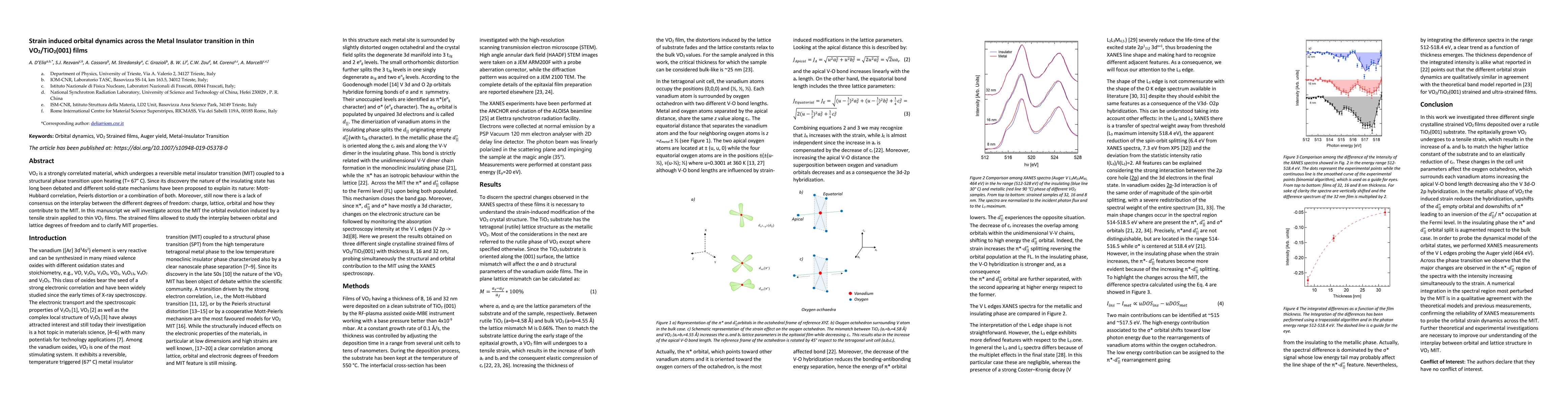 This paper investigates the metal-insulator transition (MIT) in thin VO2/TiO2 films under tensile strain, focusing on the orbital dynamics and their interplay with lattice degrees of freedom to clarify the mechanisms underlying the MIT. The study aims to resolve the longstanding debate on the nature of the insulating state in VO2.