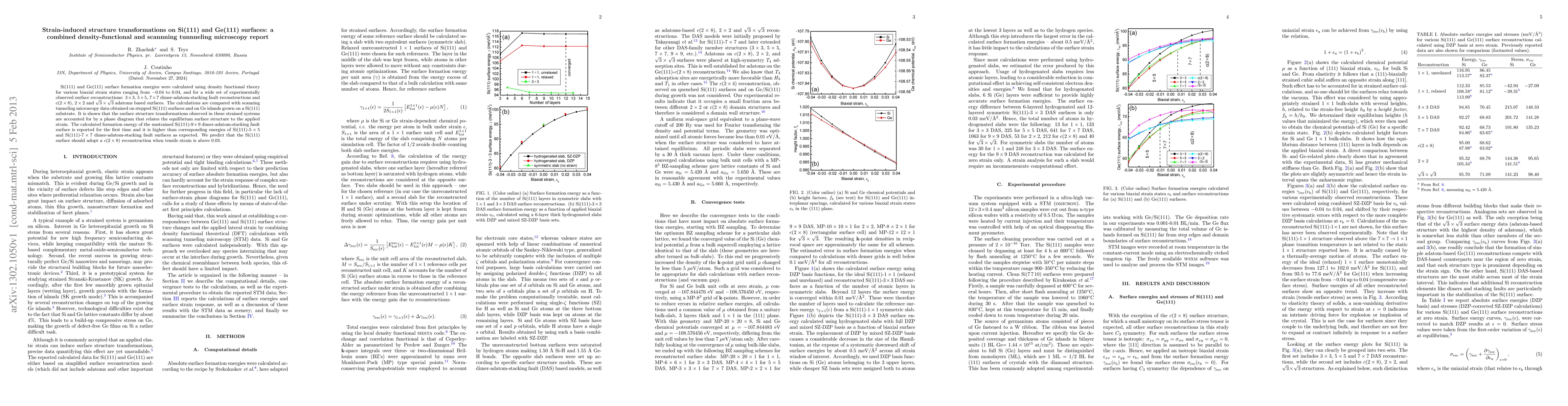 This research uses density functional theory and scanning tunneling microscopy to study the effect of biaxial strain on Si(111) and Ge(111) surfaces, revealing that surface structure transformations correlate with a phase diagram relating surface structure to applied strain. Notably, the Si(111)-9x9 surface has a higher formation energy than 5x5 and 7x7 reconstructions, predicting a c(2x8) reconstruction under tensile strain above 0.03.