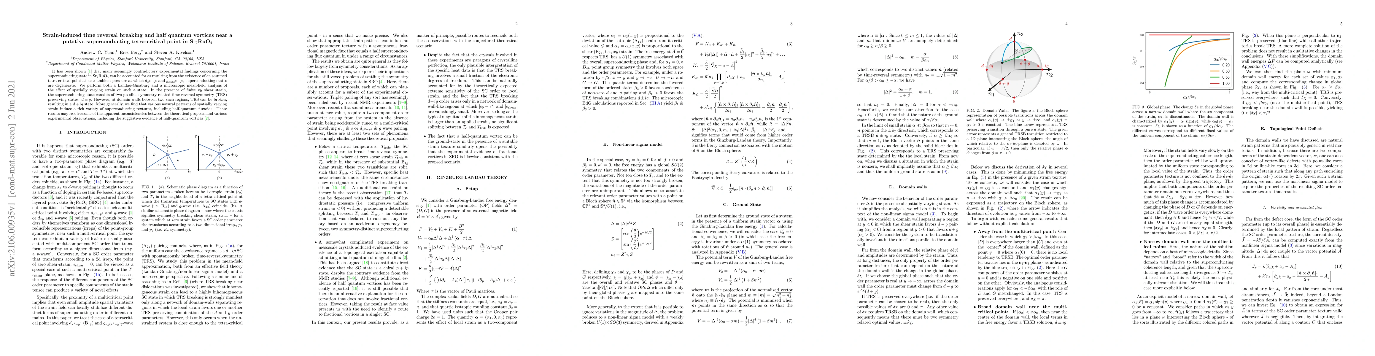 Researchers found that applying strain to a superconducting material can create two possible states with different symmetries, leading to the formation of half-quantum vortices, which may resolve some experimental inconsistencies.