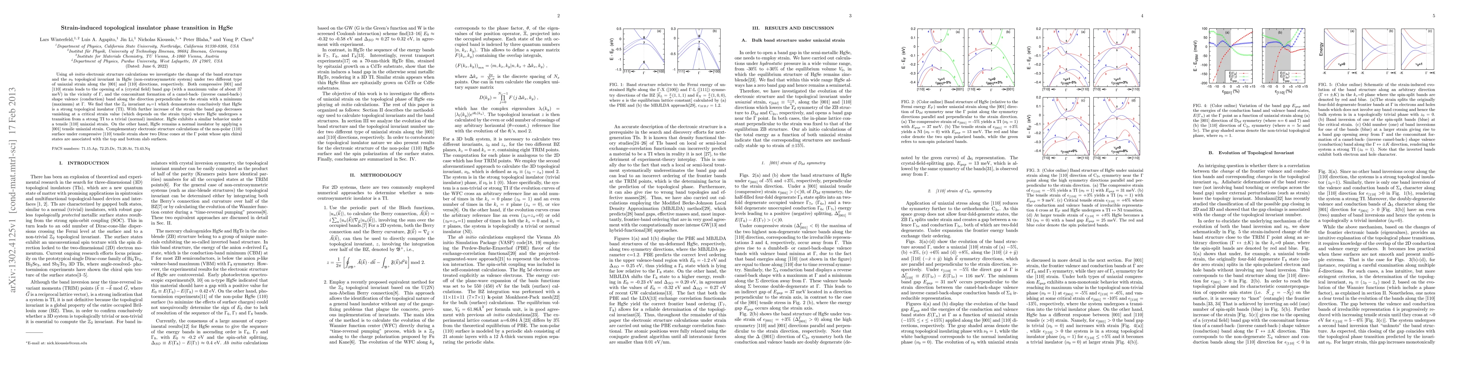 This study reveals that uniaxial strain can induce a topological insulator phase transition in HgSe, transforming it from a strong topological insulator to a trivial insulator at critical strain values. The strain also induces a camel-back-shaped valence band and a maximum band gap of 37 meV, while surface calculations show spin chiral Dirac cones under specific strain conditions.