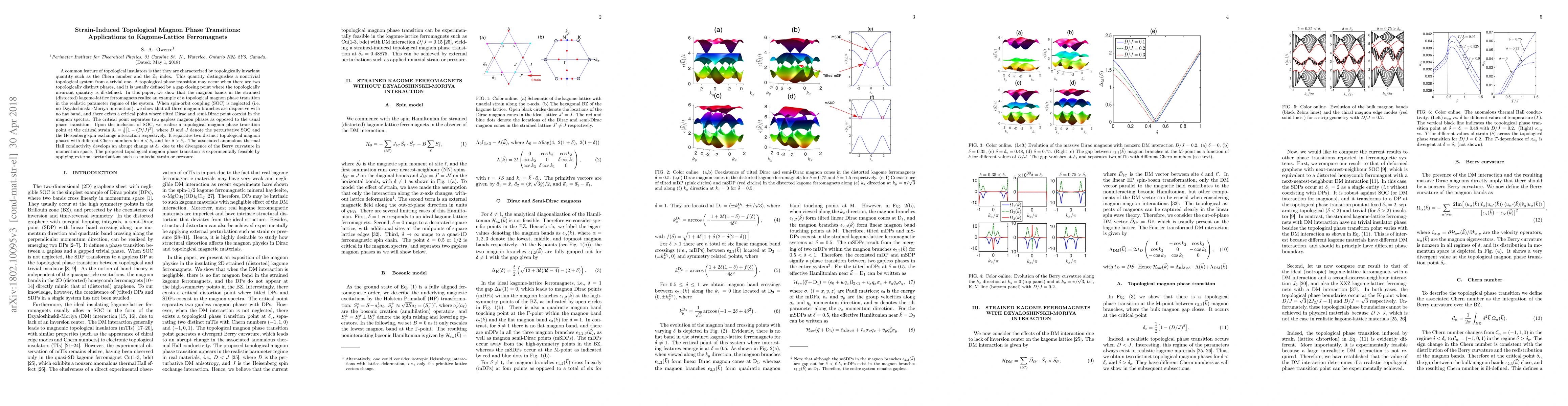 This paper investigates the topological magnon phase transitions in strained kagome-lattice ferromagnets, demonstrating a critical point where tilted Dirac and semi-Dirac points emerge, leading to a topological phase transition with distinct Chern numbers. The transition is experimentally accessible via uniaxial strain or pressure.