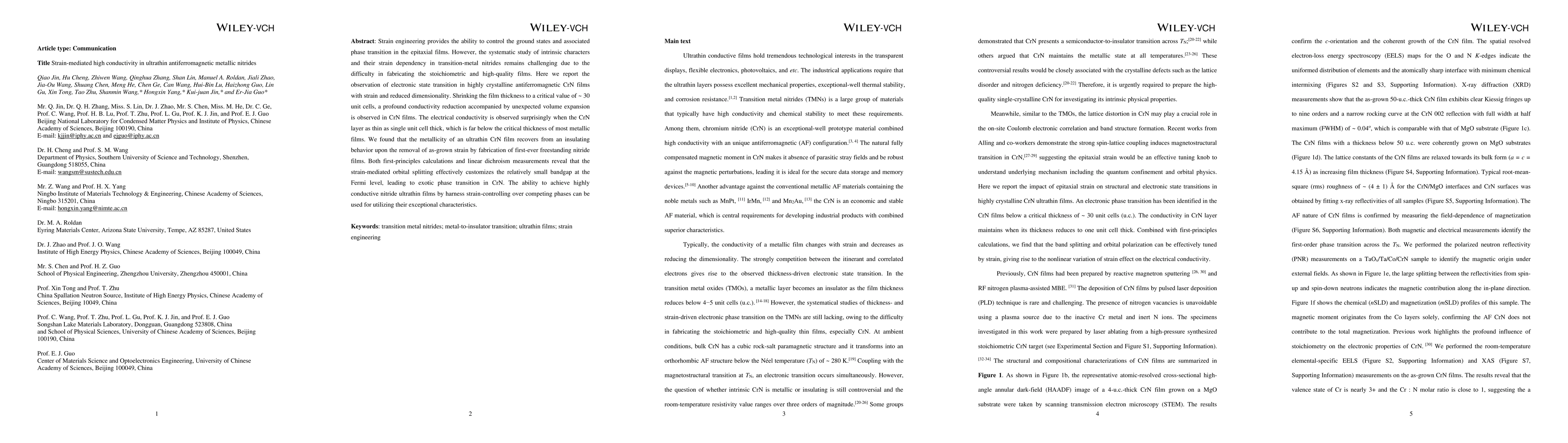 This paper reports on the use of strain engineering to achieve high conductivity in ultrathin antiferromagnetic CrN films, demonstrating that removing strain through fabrication of freestanding nitride films can restore their metallic behavior, even when as thin as a single unit cell. Strain-mediated orbital splitting customizes the bandgap, leading to an exotic phase transition.