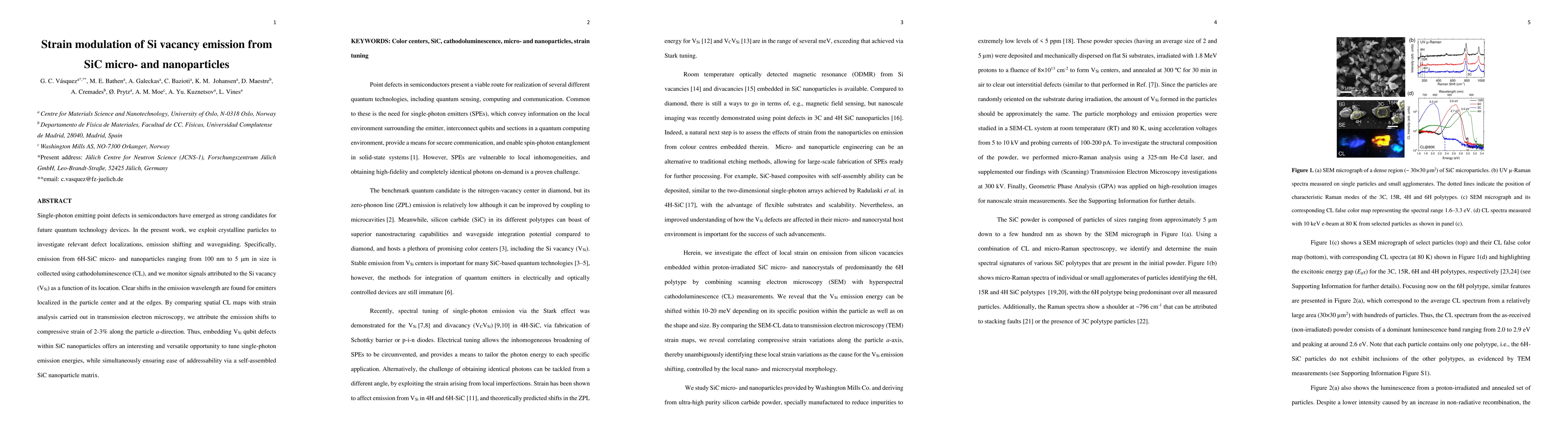 The study used cathodoluminescence to analyze the emission of Si vacancy defects in nanoparticles, revealing shifts in emission wavelength due to compressive strain.