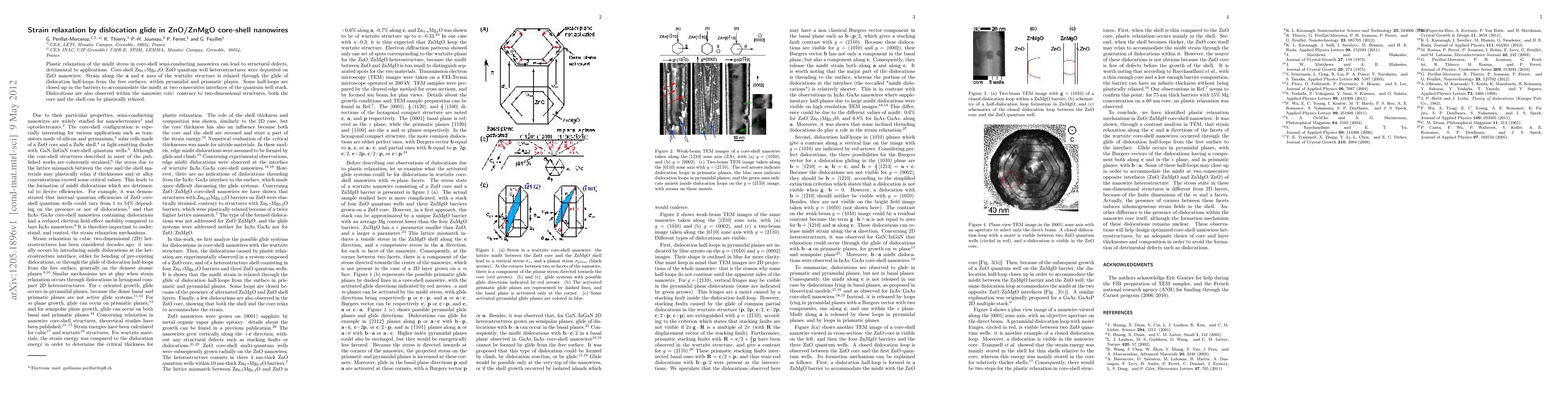 This study investigates the plastic relaxation of misfit stress in ZnO/ZnMgO core-shell nanowires, showing that dislocation glide within pyramidal and prismatic planes facilitates strain relief. Unlike 2D structures, both the core and shell of the nanowires can undergo plastic relaxation, accommodating misfit stress through dislocation half-loops.