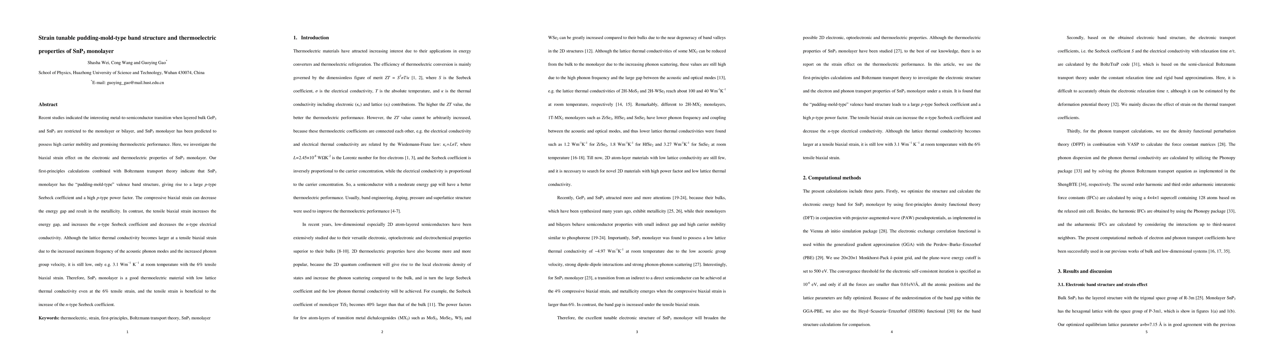 Researchers investigate biaxial strain on SnP3 monolayer, finding it exhibits promising thermoelectric performance under tensile strain, with a high n-type Seebeck coefficient despite low lattice thermal conductivity.
