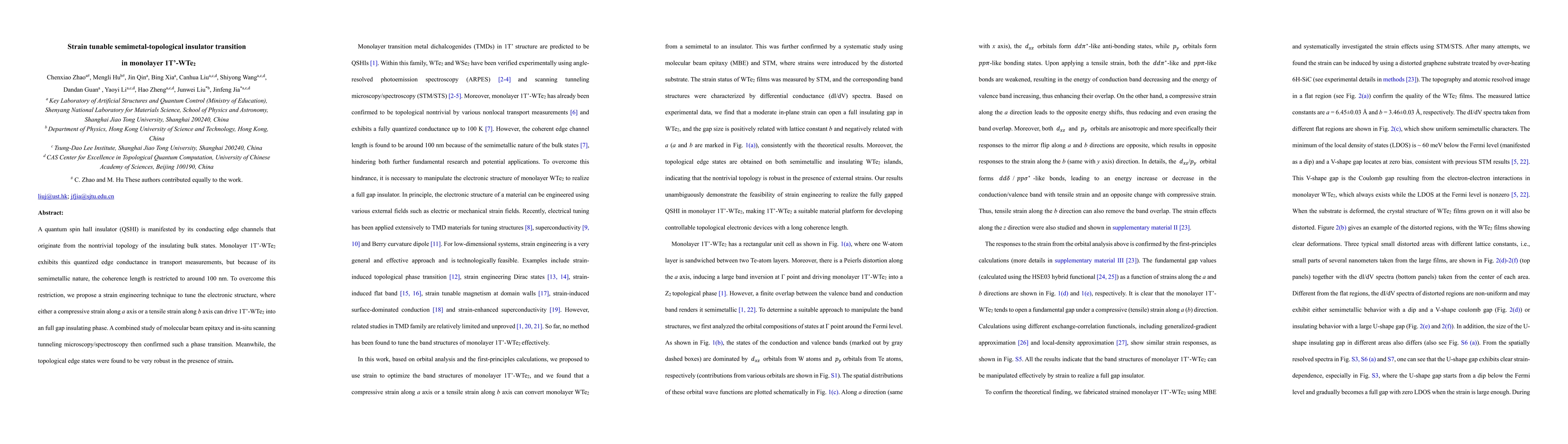 This research demonstrates a strain-engineered transition in monolayer 1T'-WTe2 from semimetal to a quantum spin hall insulator phase, confirmed via molecular beam epitaxy and scanning tunneling microscopy. The topological edge states remain robust under applied strain, suggesting potential for enhanced coherence length.