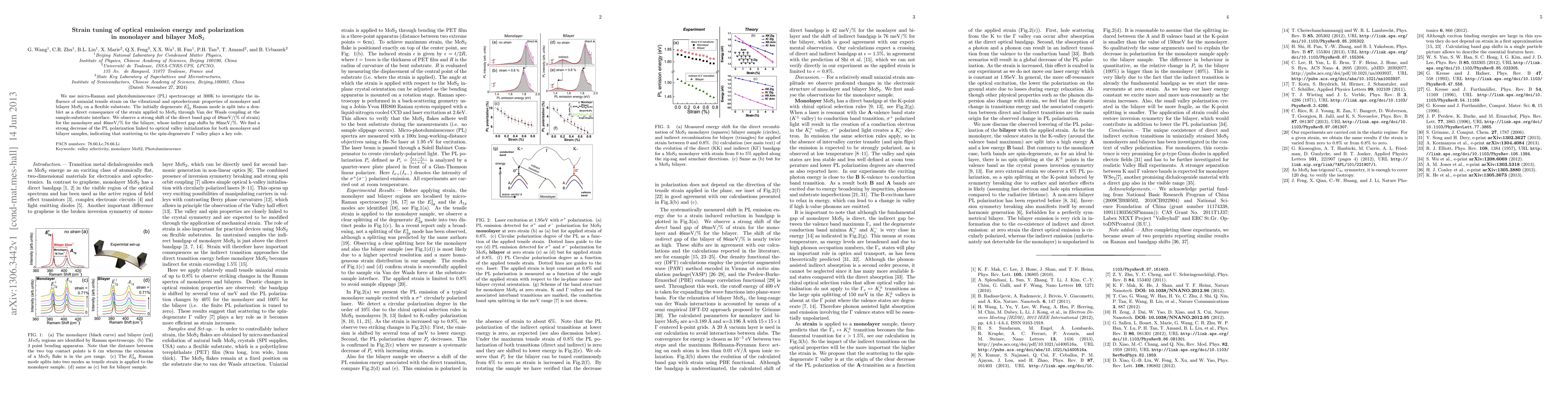 This study investigates the effects of uniaxial tensile strain on monolayer and bilayer MoS2 using micro-Raman and photoluminescence spectroscopy. The strain-induced splitting of the Raman mode and significant shifts in the band gap and PL polarization highlight the potential for strain engineering in optoelectronic properties.