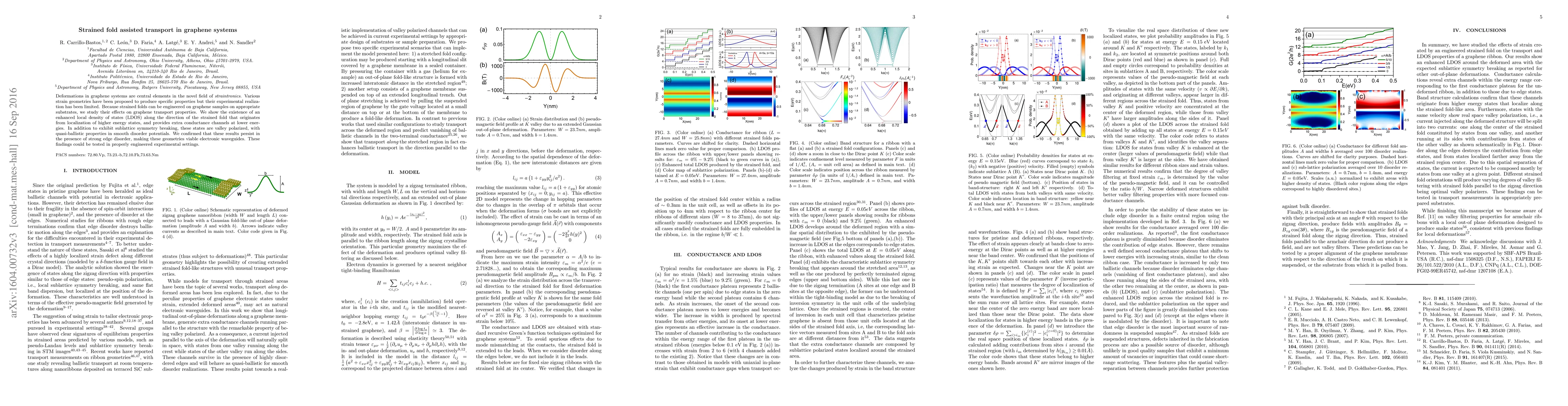 Researchers discovered that strained folds in graphene create extra conductance channels with enhanced local density of states, making them viable electronic waveguides. These findings persist even in the presence of strong edge disorder.