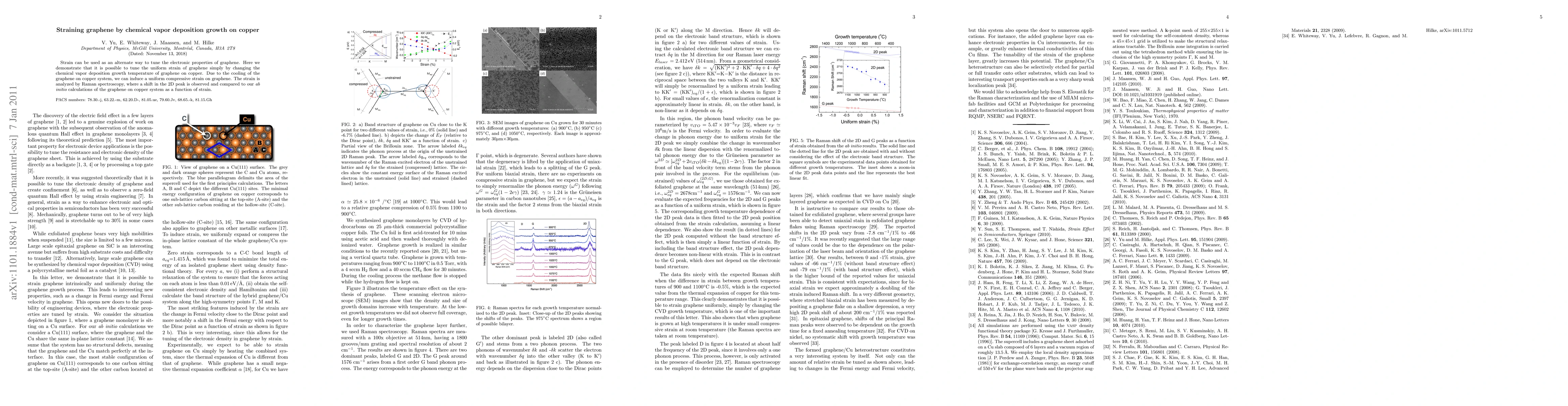 This study shows that tuning the growth temperature during chemical vapor deposition of graphene on copper can induce uniform compressive strain, which alters the material's electronic properties. Raman spectroscopy and ab initio calculations confirm the strain effects, highlighting a novel method to manipulate graphene's characteristics.