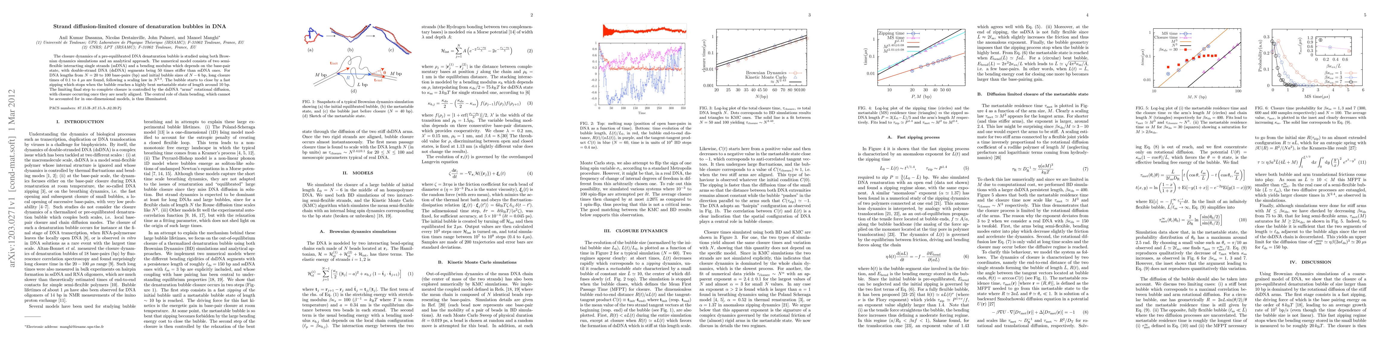 This paper investigates the dynamics of DNA denaturation bubble closure using simulations and analytical methods, revealing that bubble closure follows a scaling law and is primarily governed by the rotational diffusion of double-strand DNA arms, highlighting the importance of chain bending in the process.