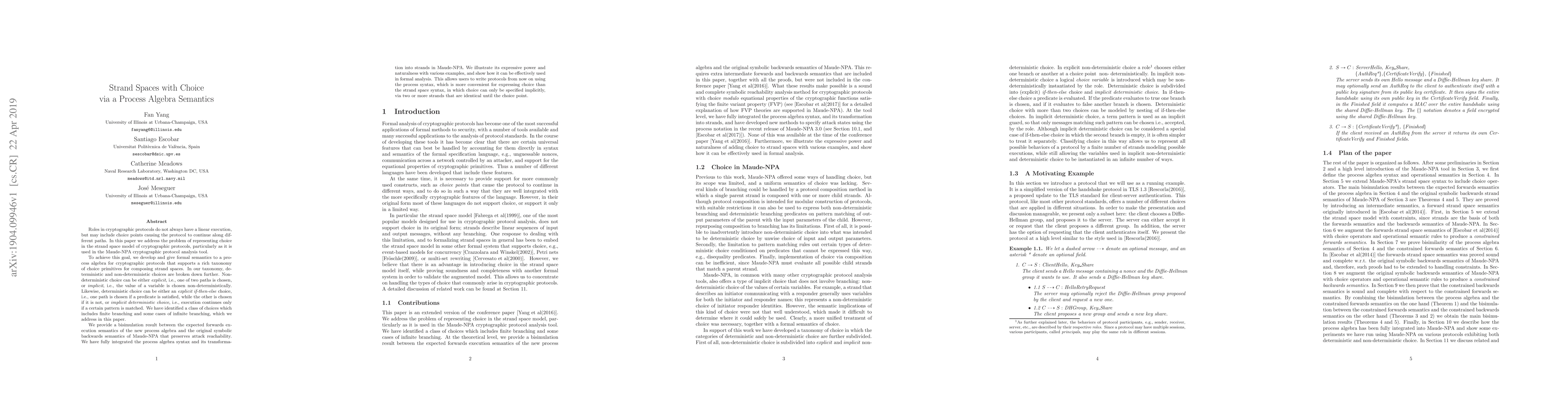 This paper develops a process algebra with formal semantics for representing choice in cryptographic protocols, particularly within the Maude-NPA tool. It introduces a taxonomy of choice primitives, including deterministic and non-deterministic choices, and integrates this into the strand space model, enhancing protocol analysis.