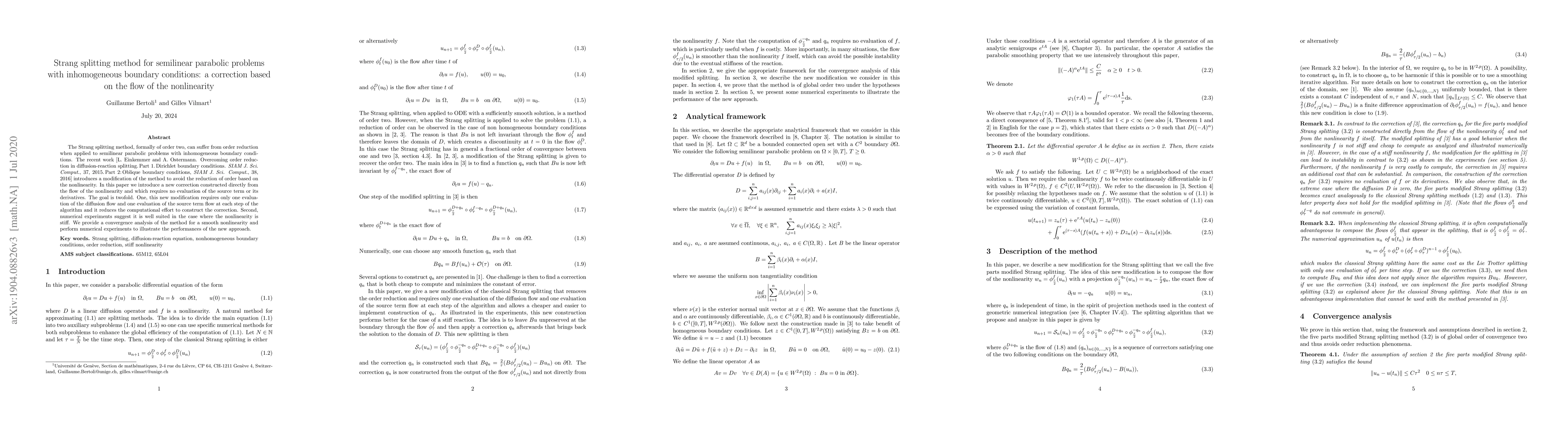 A new correction method for Strang splitting is introduced to avoid order reduction in semilinear parabolic problems with inhomogeneous boundary conditions, reducing computational effort and improving performance on stiff nonlinearities.