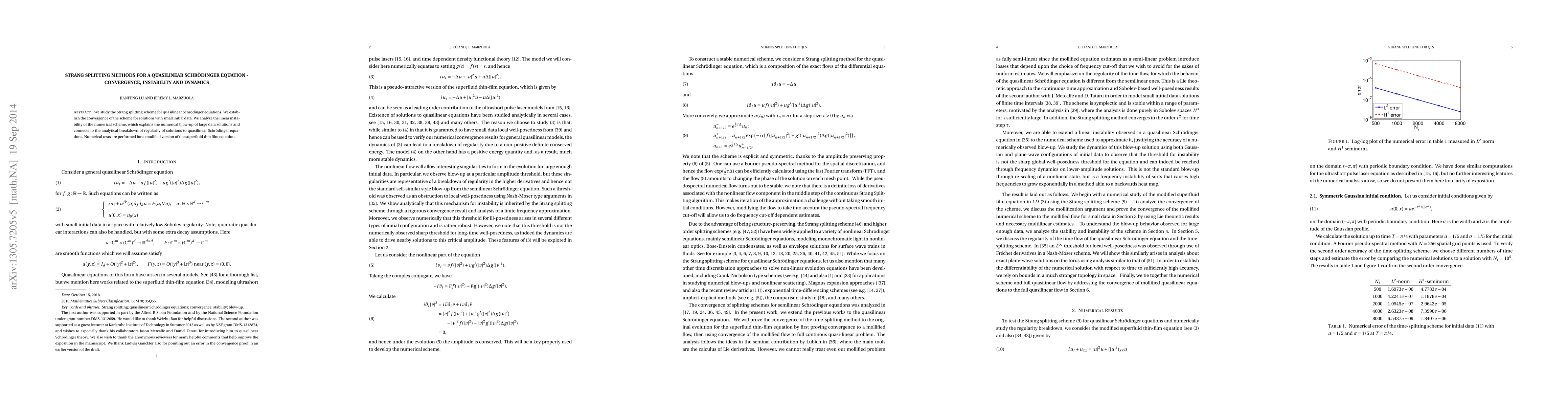 This paper investigates the Strang splitting method for quasilinear Schrödinger equations, proving its convergence for small initial data and analyzing its linear instability, which explains numerical blow-up for large initial data and links to analytical solution regularity breakdown. Numerical tests on a superfluid thin film equation validate the method.