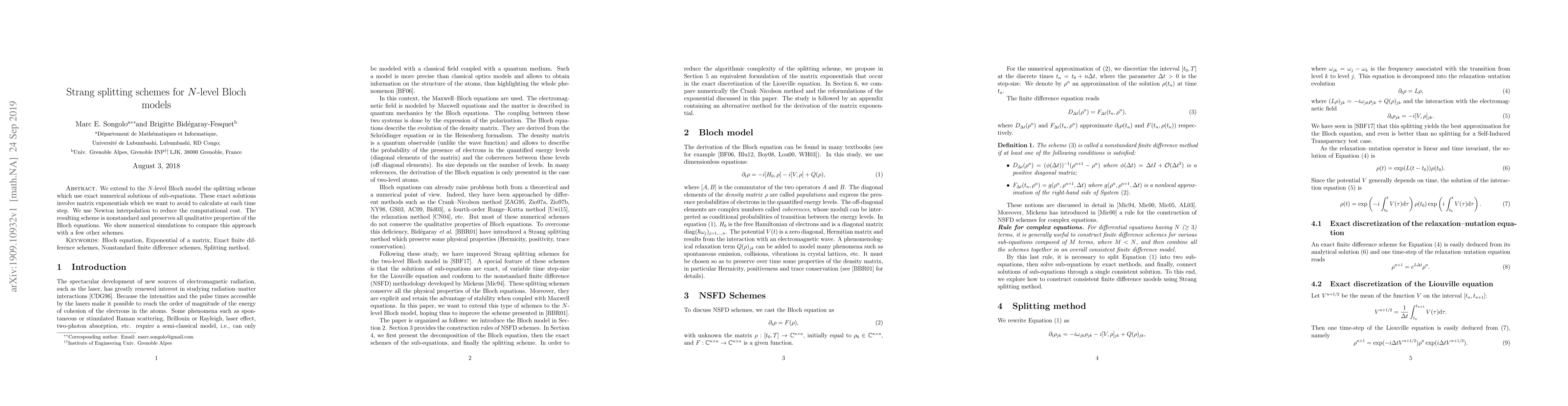 We extend to the N-level Bloch model the splitting scheme which use exact numerical solutions of sub-equations. These exact solutions involve matrix exponentials which we want to avoid to calculate at each time step. We use Newton interpolation to reduce the computational cost. The resulting scheme is nonstandard and preserves all qualitative properties of the Bloch equations. We show numerical simulations to compare this approach with a few other schemes.