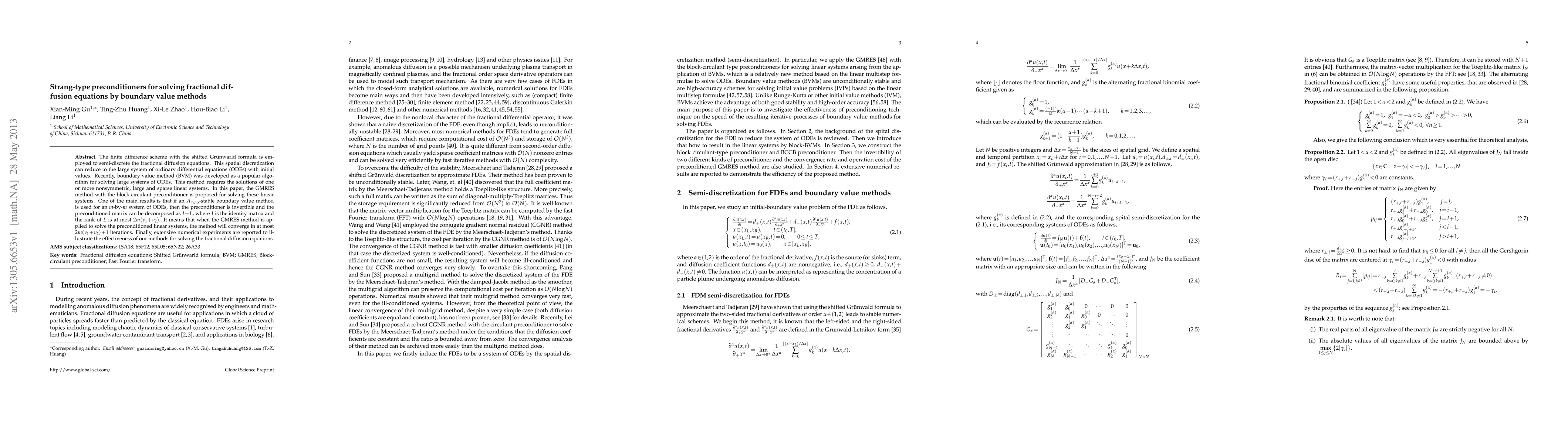 The paper introduces Strang-type block circulant preconditioners for solving linear systems resulting from boundary value methods applied to fractional diffusion equations, ensuring rapid convergence of iterative solvers.