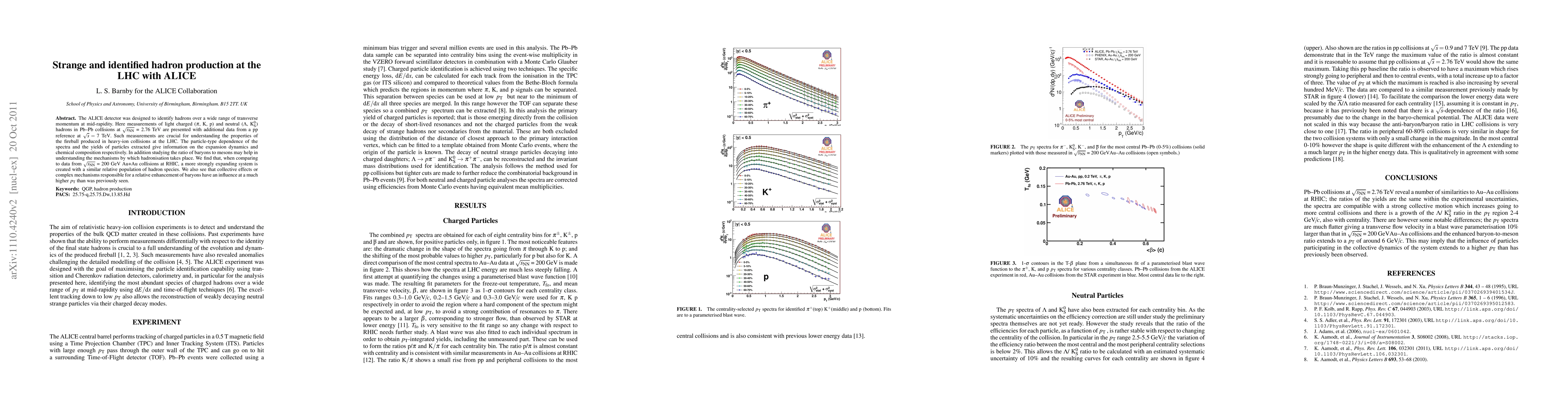 The ALICE experiment at the LHC measured light charged and neutral hadrons in Pb-Pb collisions at 2.76 TeV, finding a strongly expanding fireball with similar hadron species relative populations as in lower-energy RHIC collisions. Higher-pT collective effects influence baryon enhancement, suggesting new hadronization mechanisms.