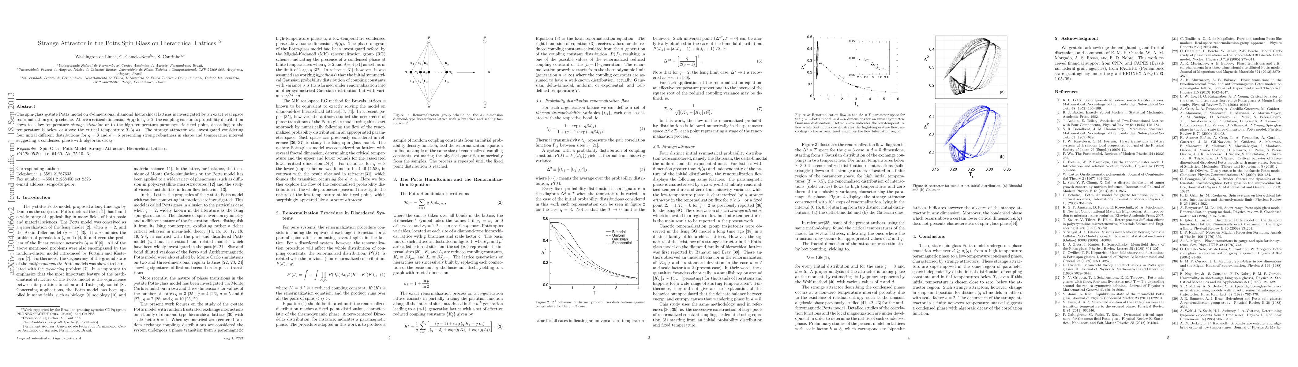 This paper investigates the spin-glass Potts model on hierarchical lattices using a renormalization group approach, revealing a strange attractor in the phase diagram above a critical dimension, indicating a robust condensed phase with algebraic decay. The study focuses on $q=3$ and $d=5$, showing the attractor's stability across different initial conditions.